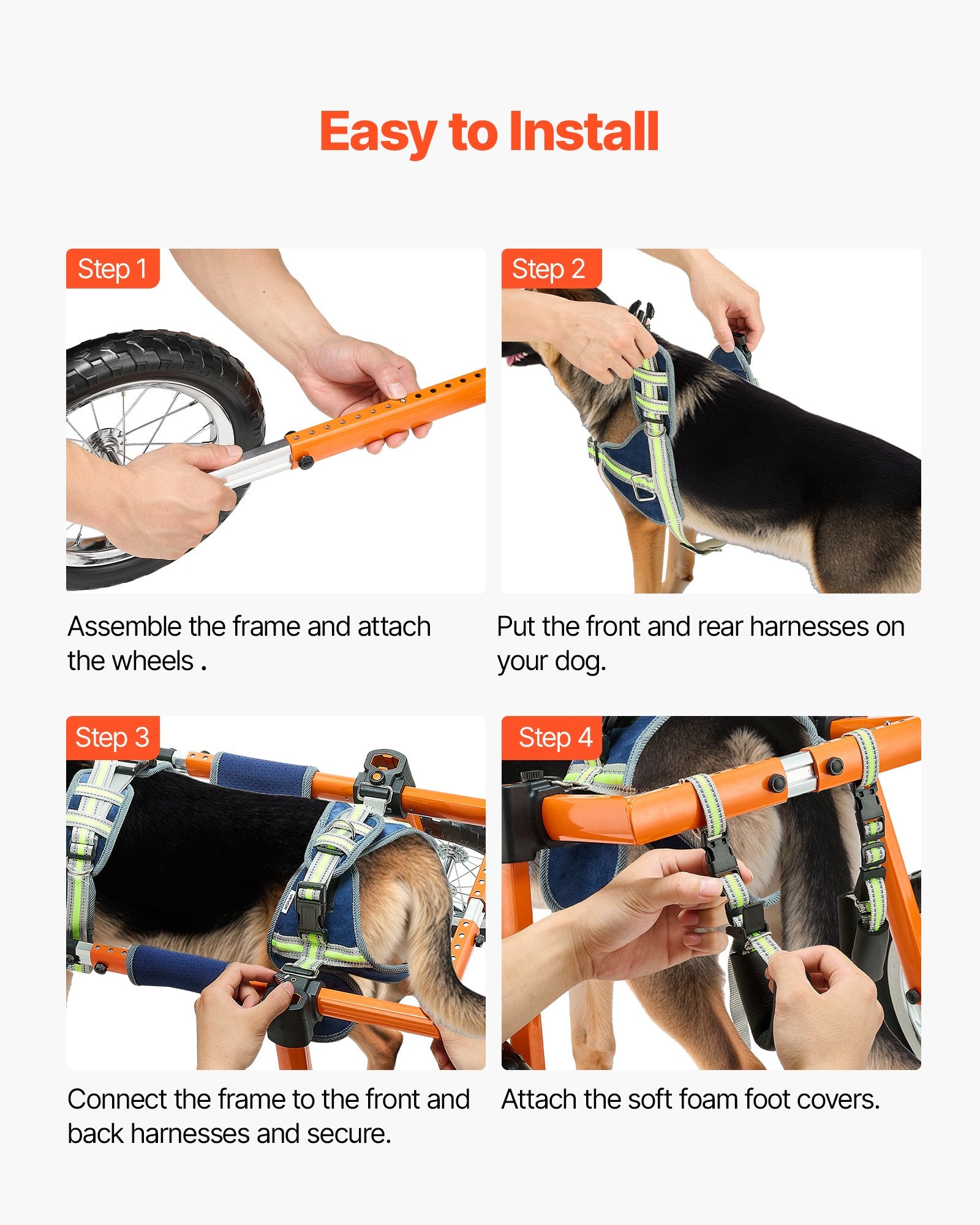 - Quick Setup, Beginner-Friendly: Spring buckles and simple screw adjustments allow you to assemble dog walker wheelchair in minutes. Once installed, it stays secure without frequent readjustment. Includes a 2 m leash for hassle-free outdoor use.