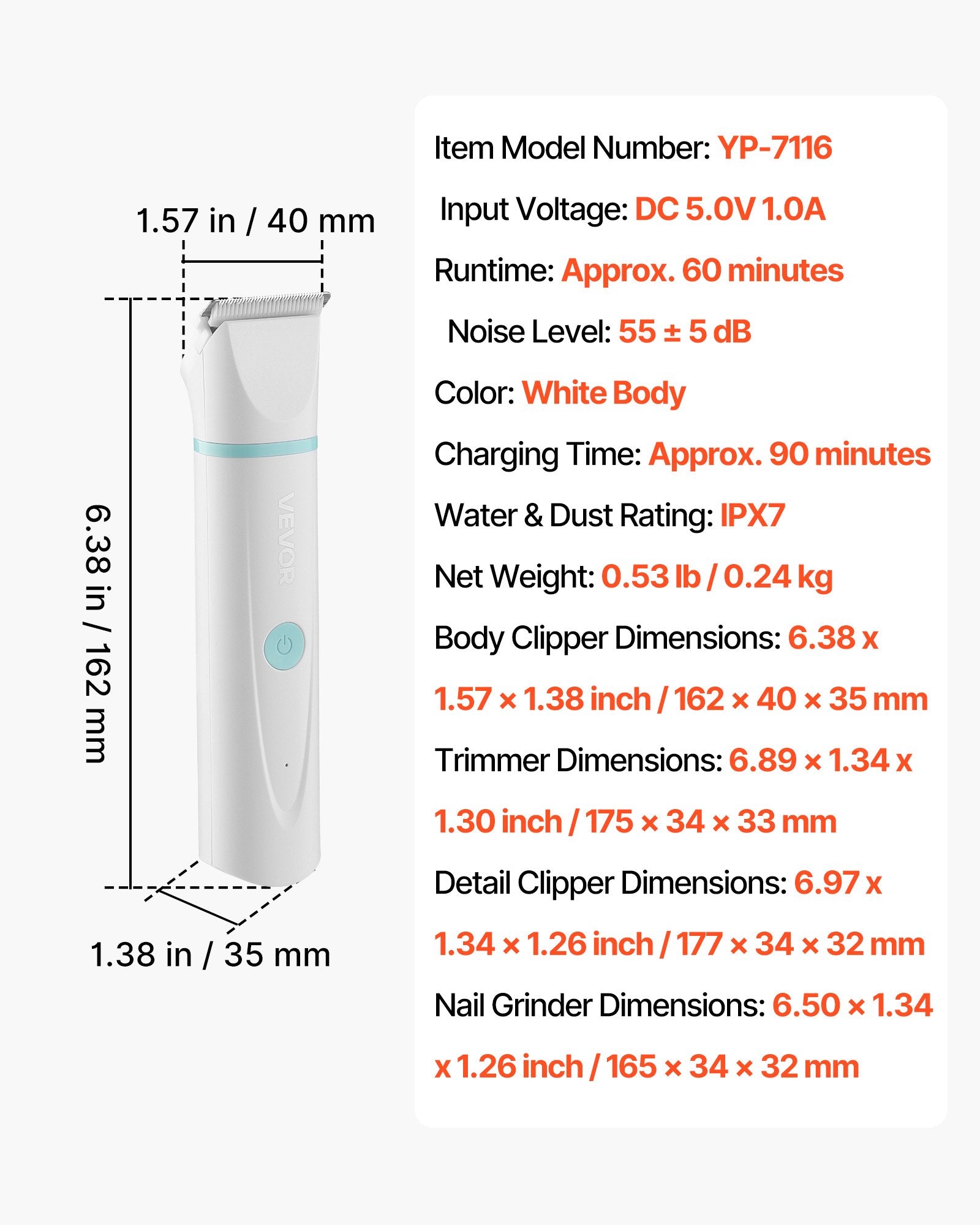 - IPX7 Waterproof: Featuring an IPX7 waterproof, the dog trimmer for grooming can be rinsed directly under water to clean pet hair and debris. The sealed structure effectively secures internal components, ensuring stable and long-lasting operation