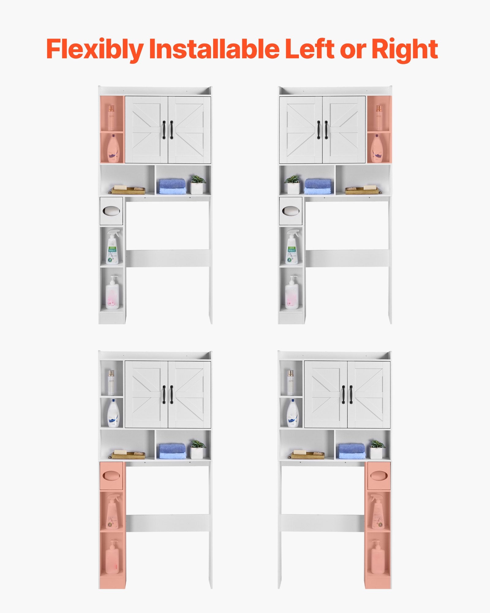 - Multi-Tier Storage: This over the toilet cabinet provides multiple tiers to make full use of the space above your toilet. Easily store toiletries, towels, and more. The combination of closed doors and open shelves keeps items private yet accessible