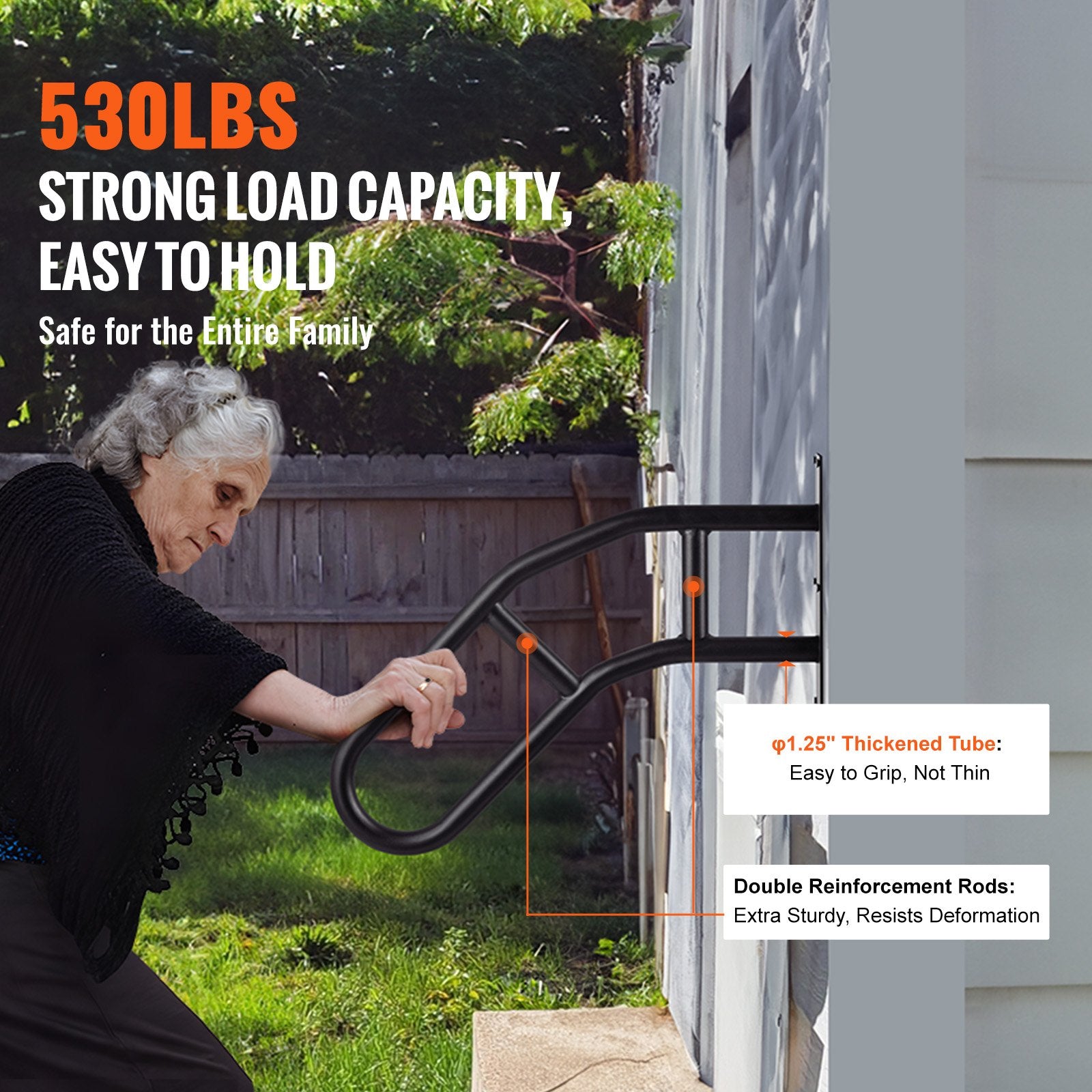- 530 lbs Strong Load-Bearing: The wall-mounted handrail is durable and provides continuous safety protection for the elderly and children. Its burr-free surface is peel-resistant and can withstand sun, rain, and snow. The thickened handrail offers a comfortable grip, ensuring secure use for pregnant women and the elderly.