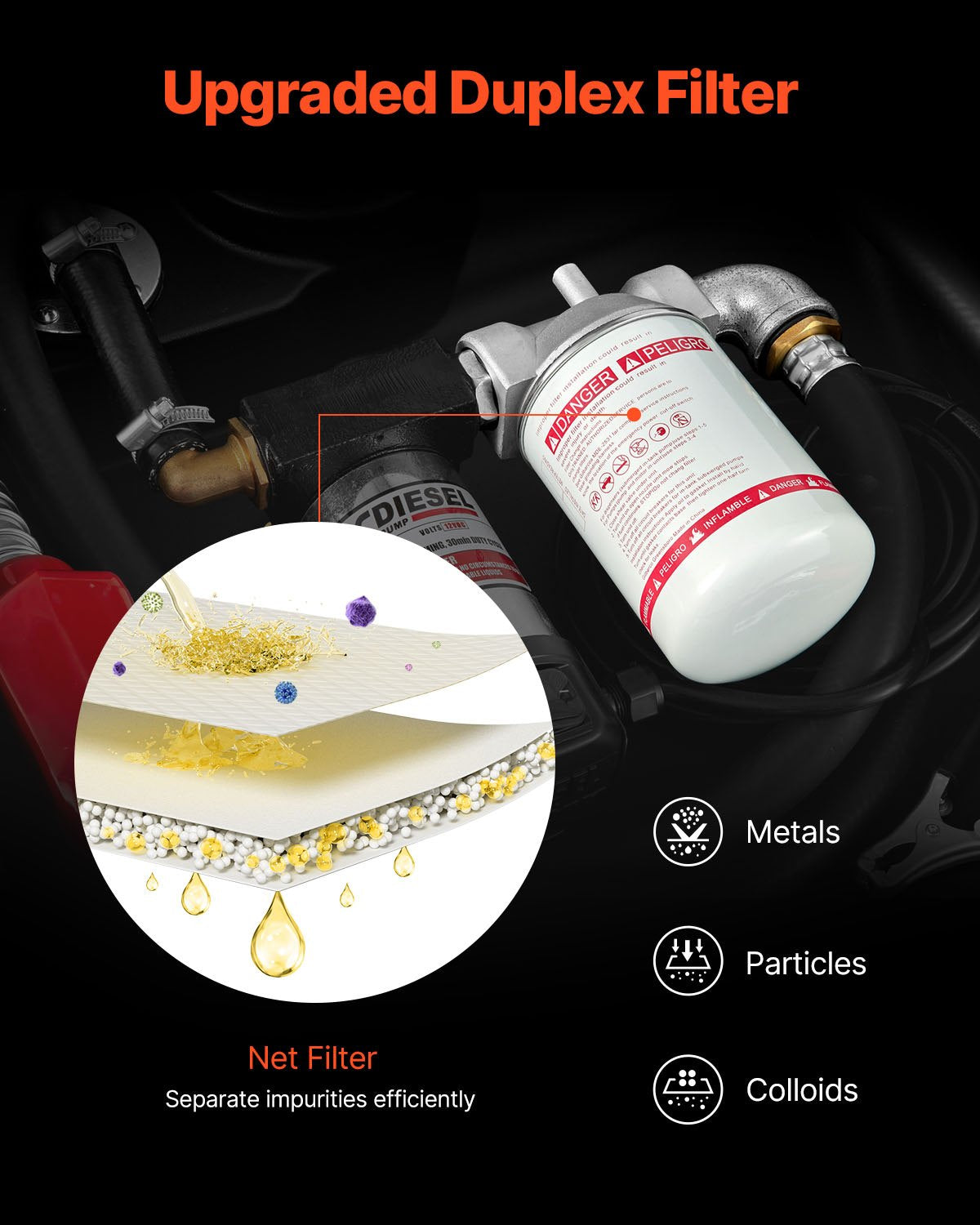 - Upgraded Filter Design: Compared with others products, Our fuel transfer tank is equipped with a duplex filter to offer purer diesel. The front-end filter of the inner tank can separate large particles of impurities, and the premium outer filter is designed to filtrate small impurities such as metal, colloids, tiny particles, etc.
