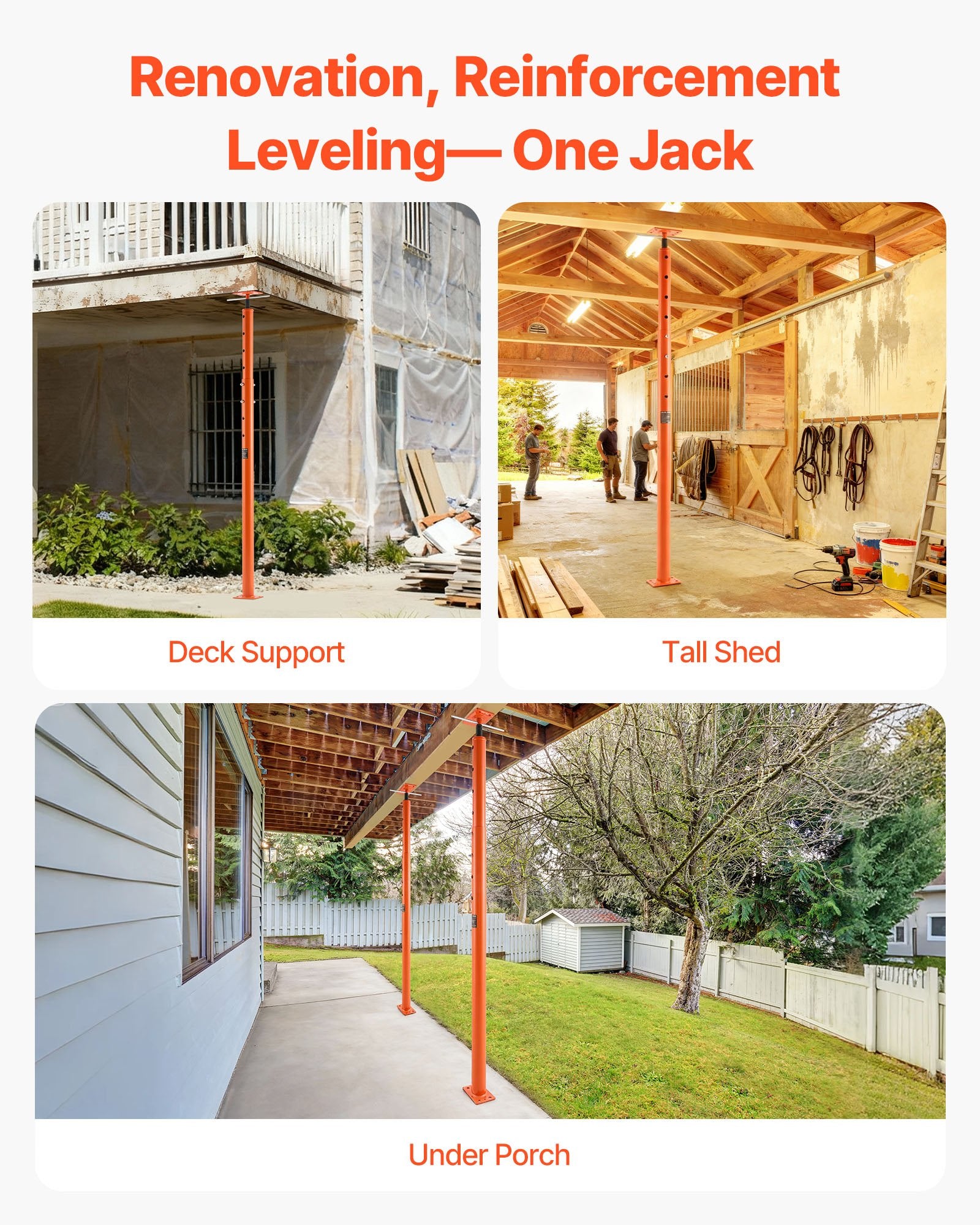 - Versatile Application: Our floor joist jack boasts an excellent load capacity and unique adjustable height design. Ideal for temporary support in various places like beams, patios, and construction—this jack does it all