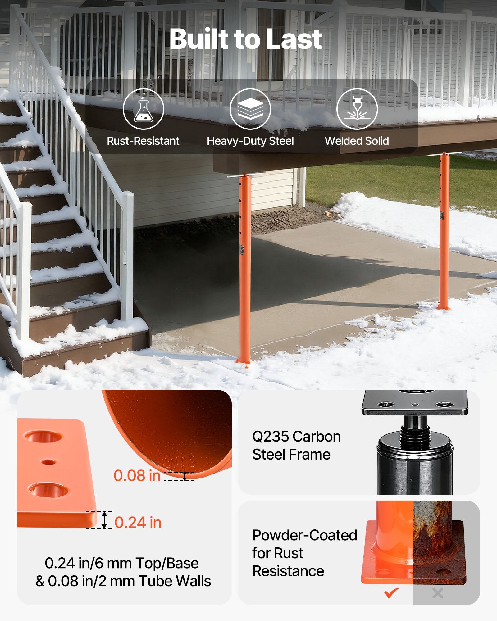 - Integrated Welded Base Plate: The house leveling jack's base plate is seamlessly welded to the pipe with an integrated welding process. This avoids the need to fix the base plate to the pipe, making installation a snap without extra steps
