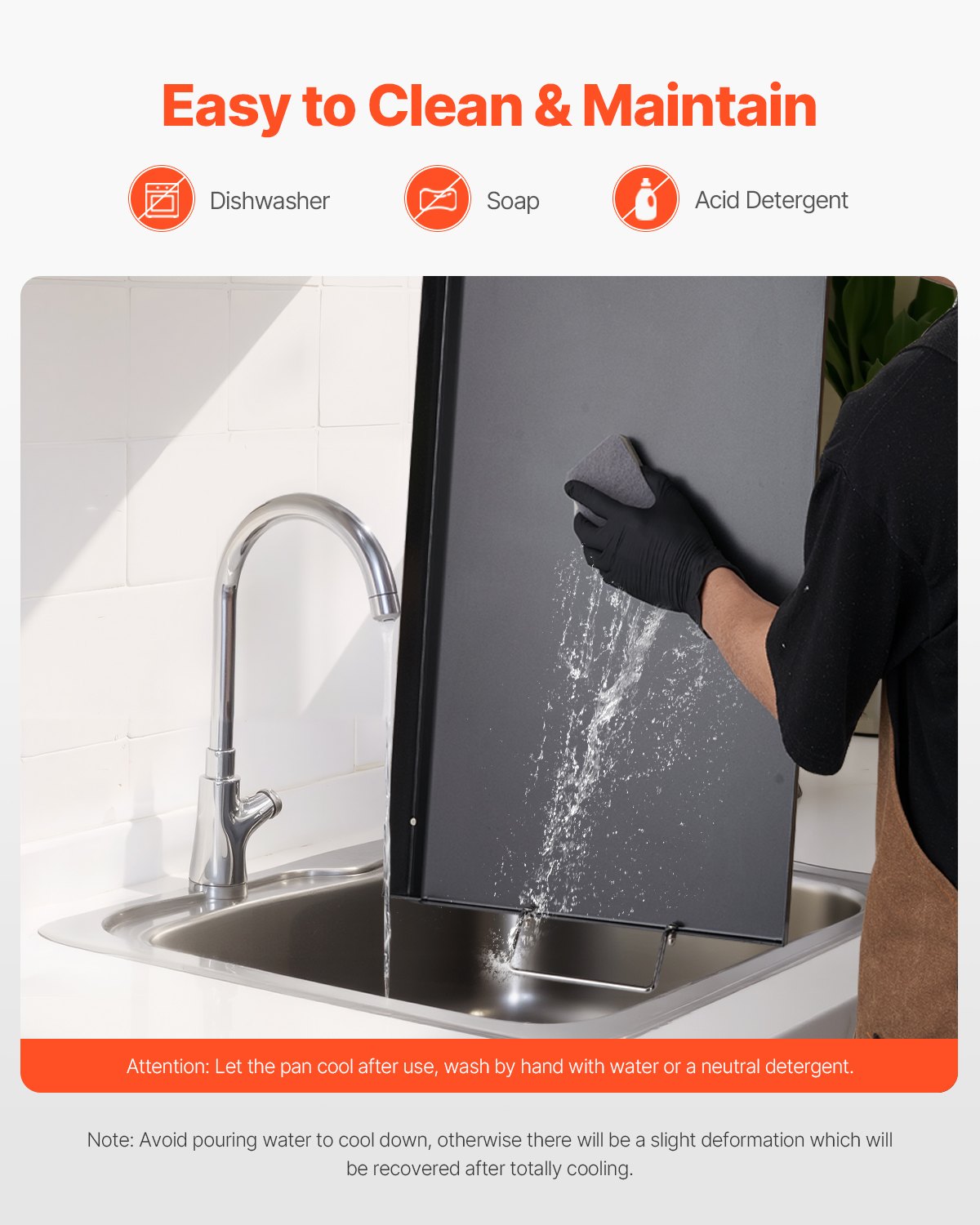 - Quality Carbon Steel: Made of carbon steel with a BPA-free PTFE coating on the surface, this griddle can handle temperatures up to 500℉. Do not dry heat and rinse when hot. The bottom x-shaped reinforcement resists to deform