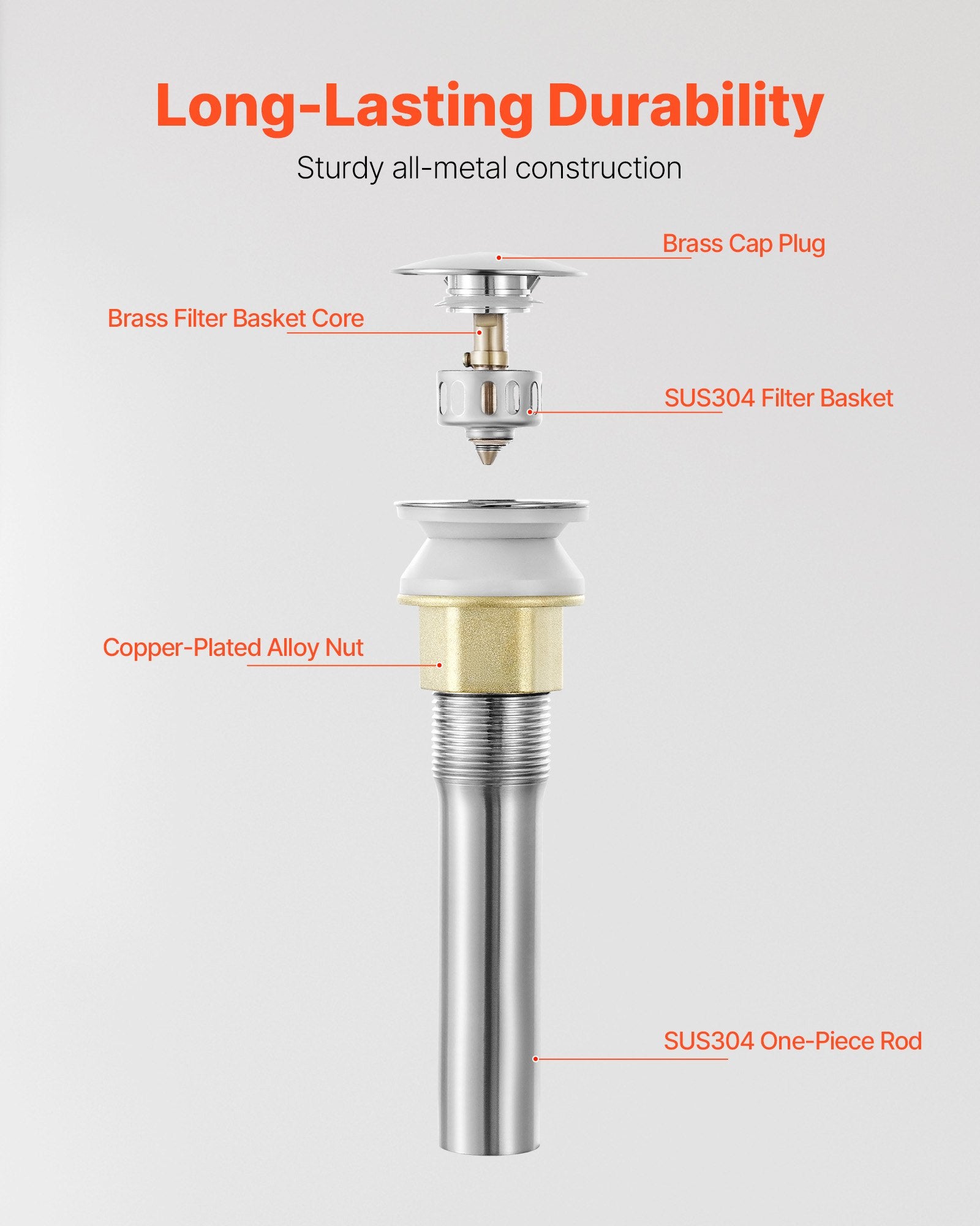 - All-Metal Material: This bathroom sink drain is made from solid brass and SUS304 stainless steel, ensuring durability. It maintains excellent performance and appearance in daily or humid conditions. Ideal for your bathroom.