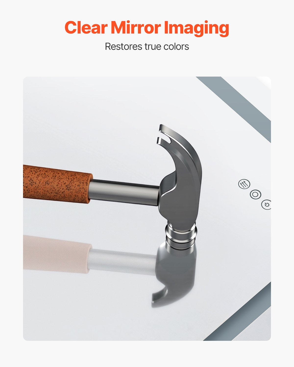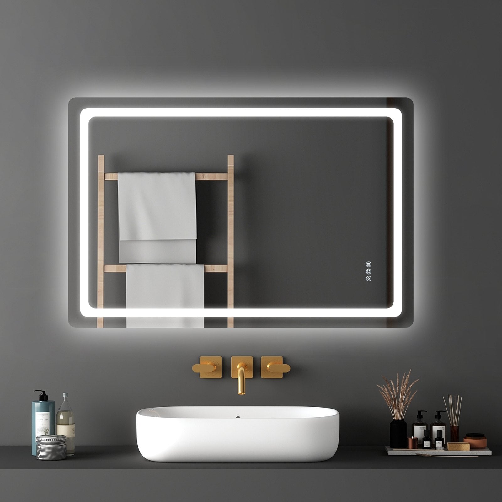 - One-Touch Anti-Fog: This led mirror for bathroom features an anti-fog function that quickly clears misty condensation. Whether in a humid environment or a bathroom after a shower, simply touch the anti-fog button, and the mirror will heat up to a constant temperature within 45s to clear the fog. This function can be turned on or off independently to save energy when not needed.