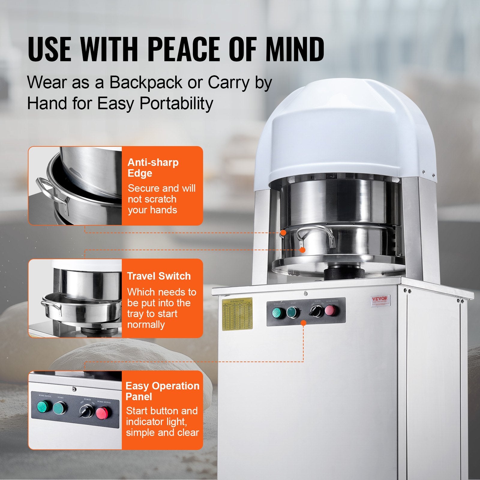 - 20pcs Equal: This electric dough divider can divide a large dough into 20 equal portions. Each one can range from 60 to 260 grams (2.12 to 9.17 oz). It features fast, non-stick, efficient dough dividing, avoiding the problem of unequal size caused by manual segmentation.