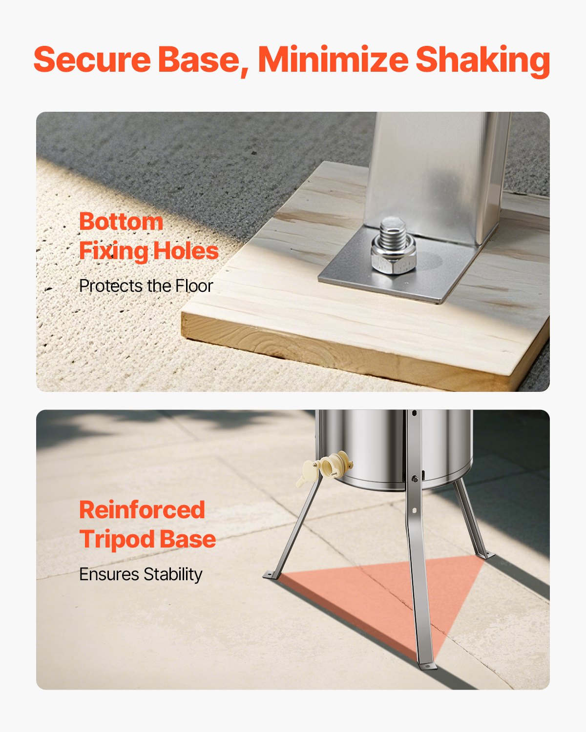 - Conical Bottom & No Honey Left Behind: The honey spinner features patented sloped base design that directs honey naturally to the bottom, minimizing cleaning time and ensuring no honey left. No need to tilt the machine, improving honey extraction efficiency.