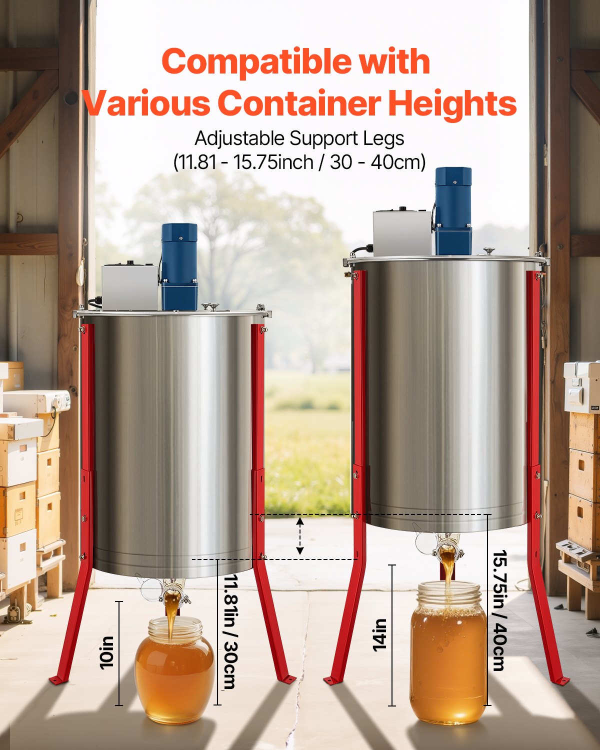 - 26-33.8 in Adjustable Height: The honey bee extractor comes with adjustable legs accommodate various workstations or surfaces. The ergonomic design reduces lower back strain, making it ideal for users between 1.5 to 1.88 meters tall, improving comfort during use.