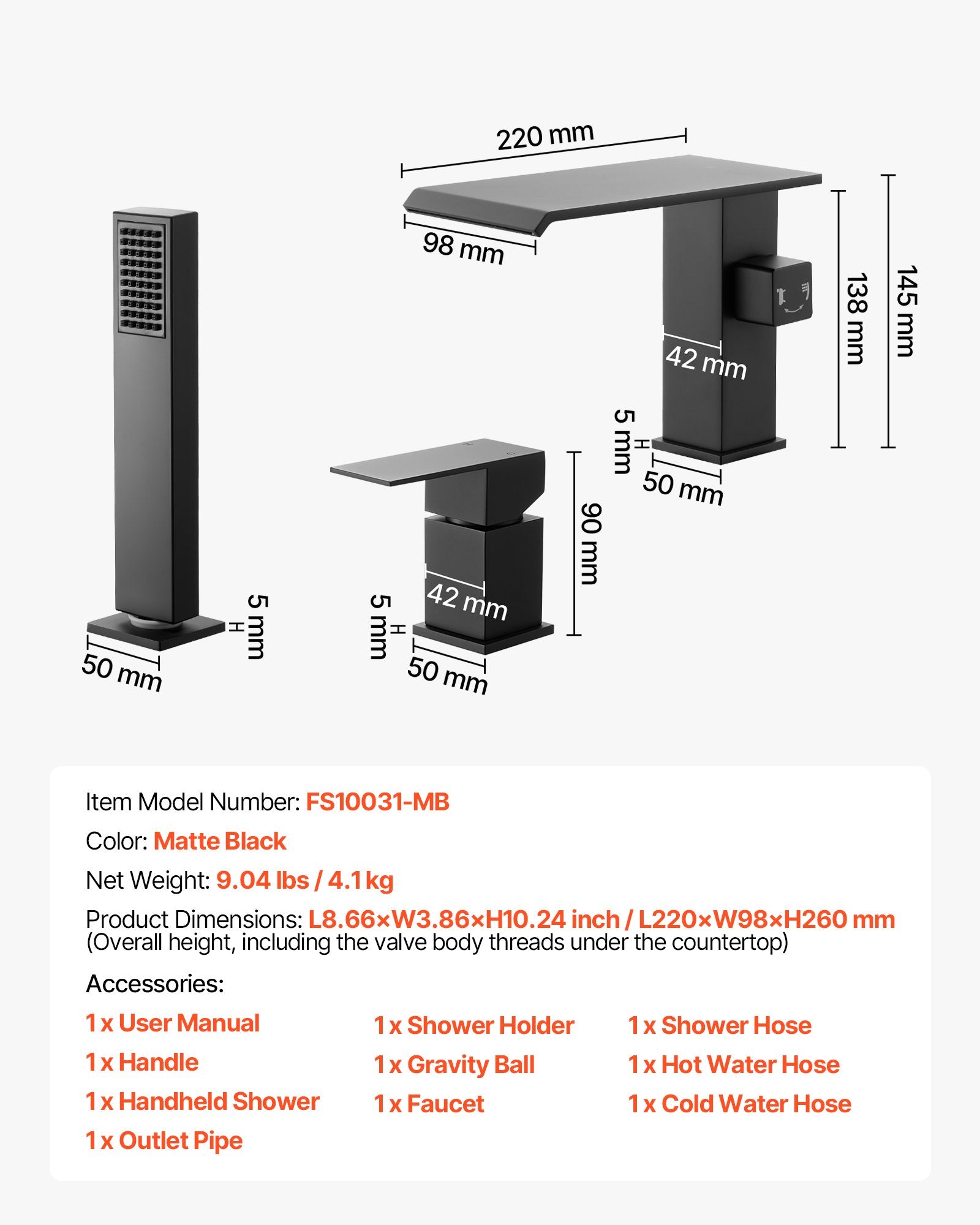- Versatile Water Flow: Featuring dual water flow modes, this waterfall roman tub faucet lets you switch freely between tub filling and handheld shower. It broadens cleaning reach and adapts smoothly to varying needs, making your bath time more convenient and thorough