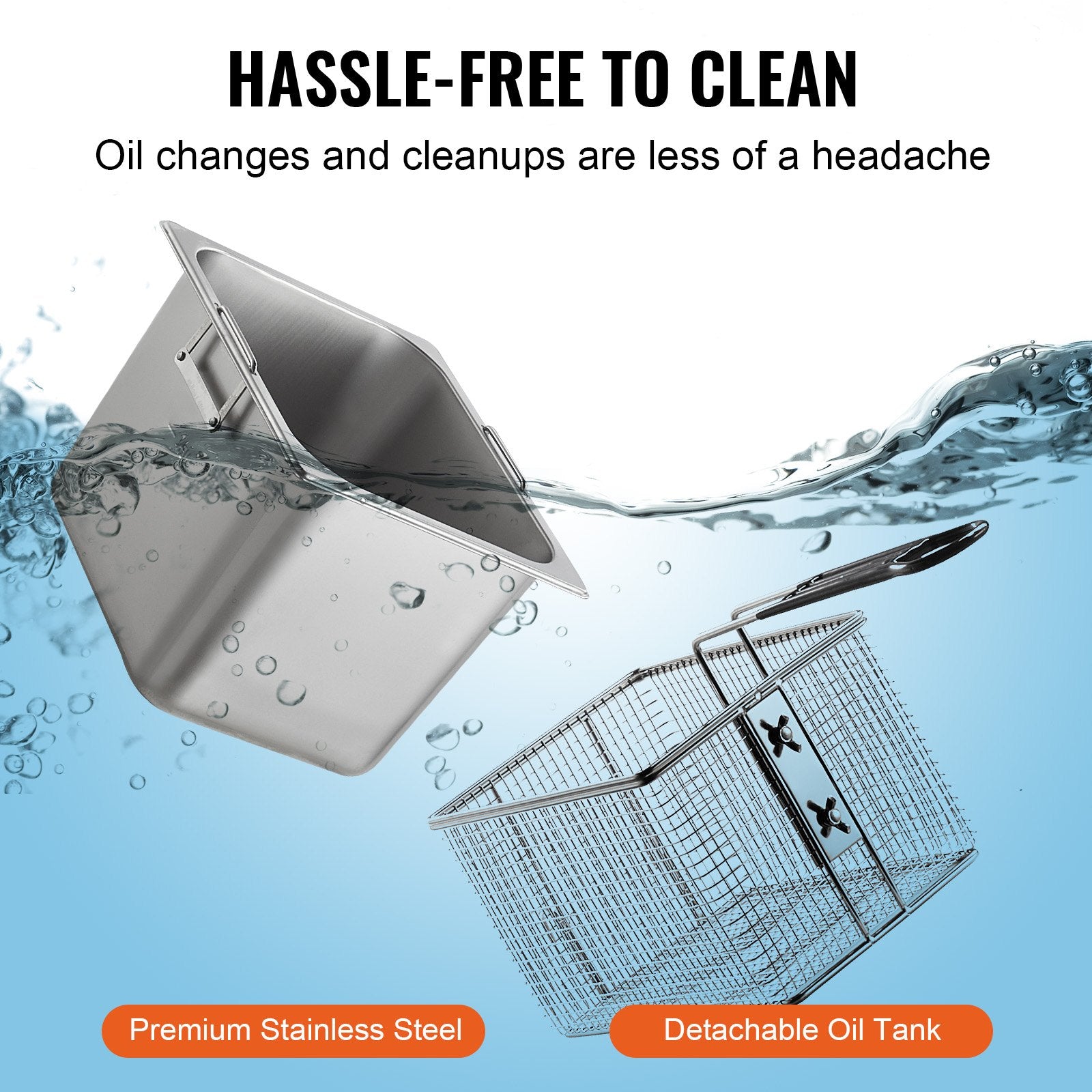 - Clean with Ease: All components of this electric deep fryer are easy to lift out, including the oil tank. And guess what? The stainless steel exterior makes it easy to wipe down. Note: 1. Please PEEL OFF any white plastic protective film on the surface. 2. Always make sure the machine is cleaning cool and dry before string.