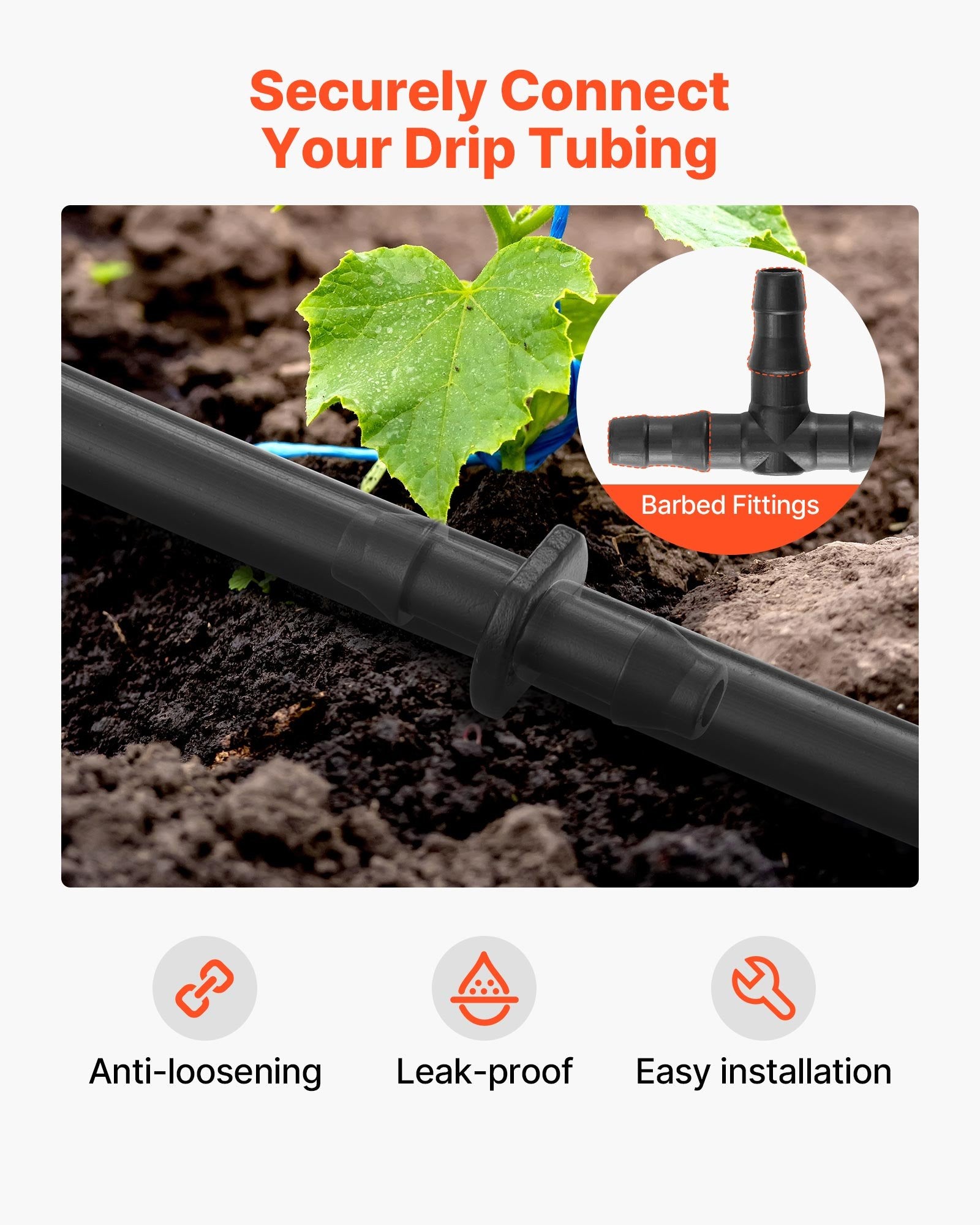 - Upgraded Barbed Design: The barbed connectors feature barbed tips for easy, tool-free installation, providing a tight, leak-proof fit with the hose
