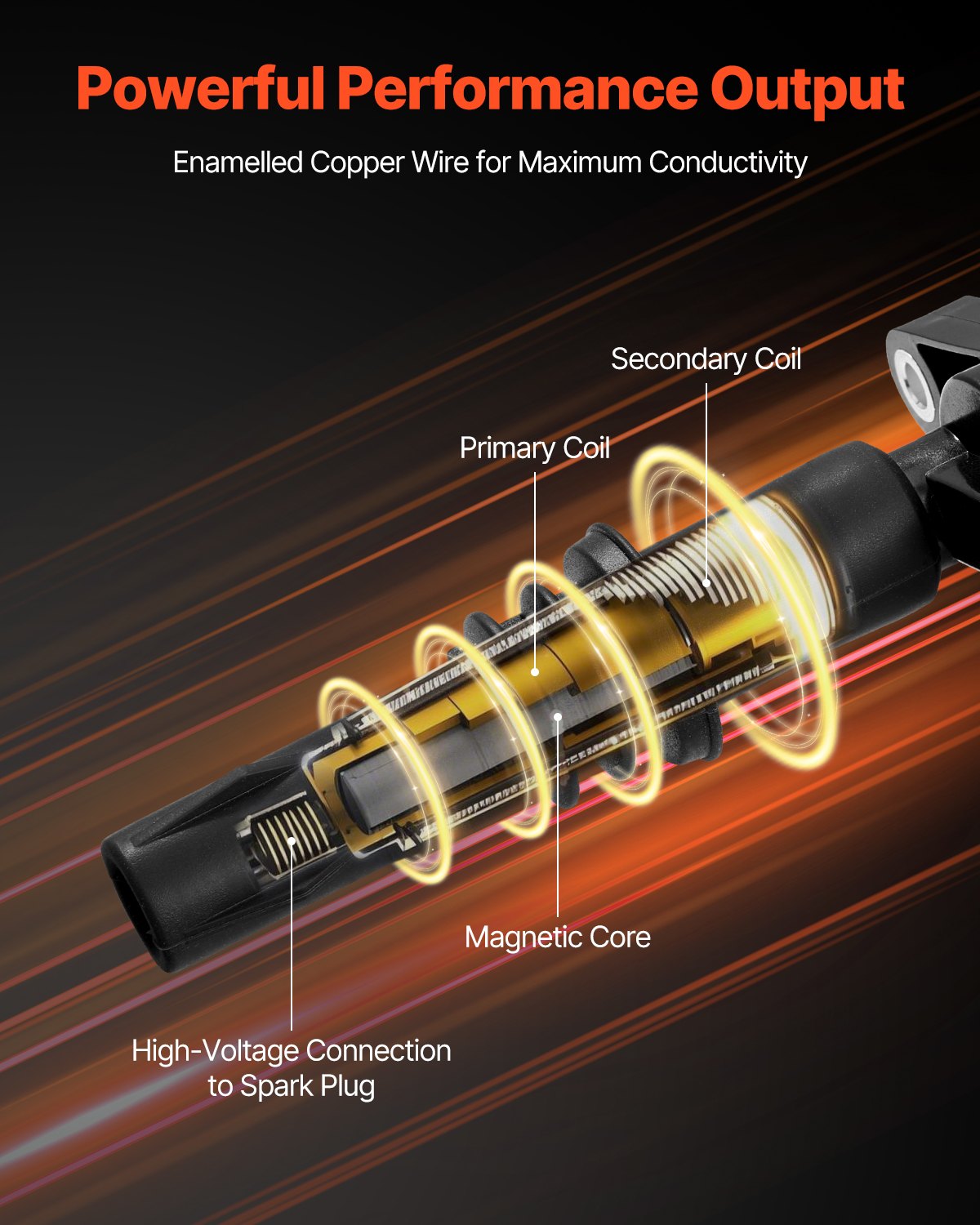 - Enhanced Driving Experience: The ignition coil set not only helps maintain proper engine performance, improves fuel economy, reduces emissions and RFI electronic interference, but also effectively reduces engine vibration and noise, enhancing driving comfort and overall vehicle performance