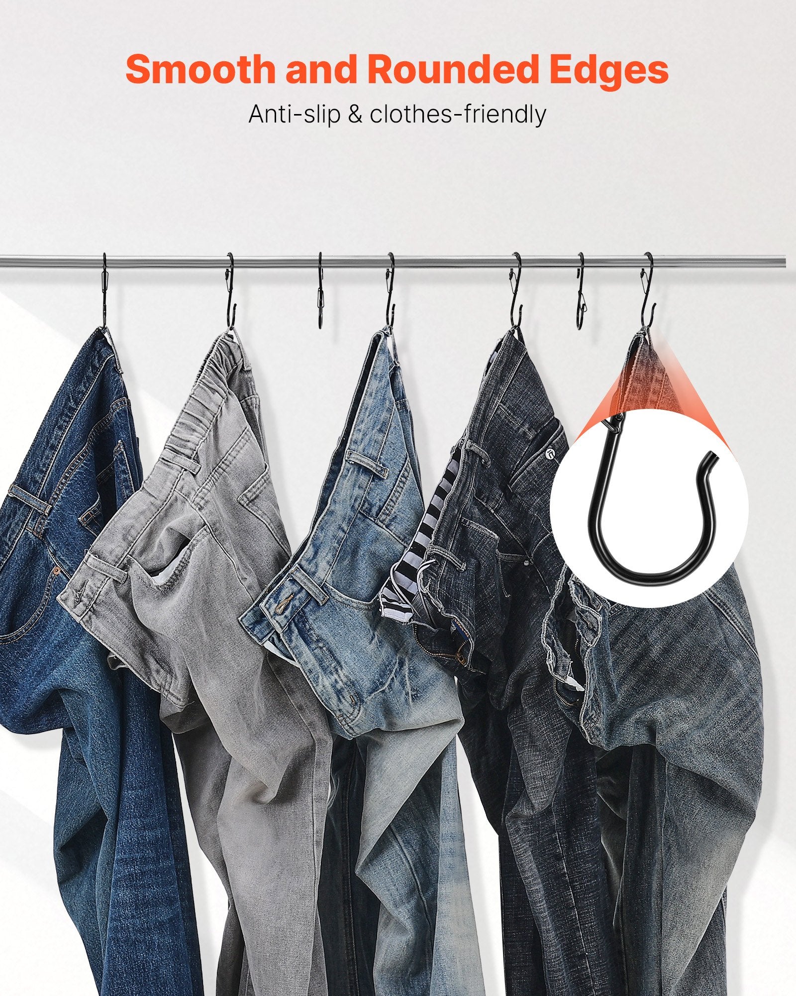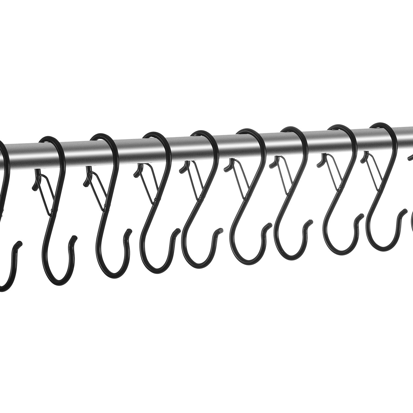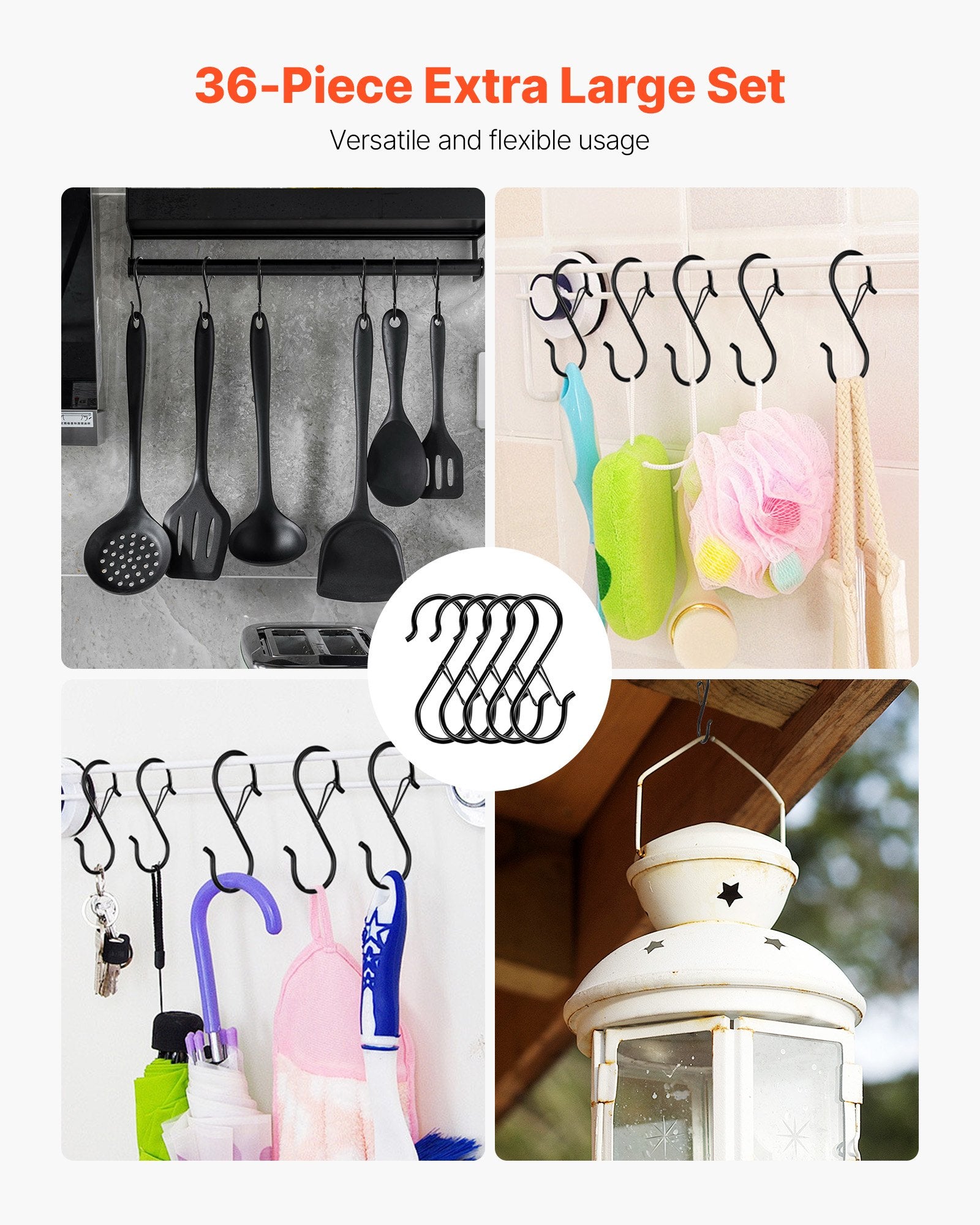 S Hooks 36 Pack, 39.68 LBS Capacity for Bars up to 0.85 Inch, S Shaped Hooks with Safety Buckle, Heavy Duty Metal Hangers for Plants, Jeans, Clothes in Garden, Closet, Kitchen, Bedroom, Black