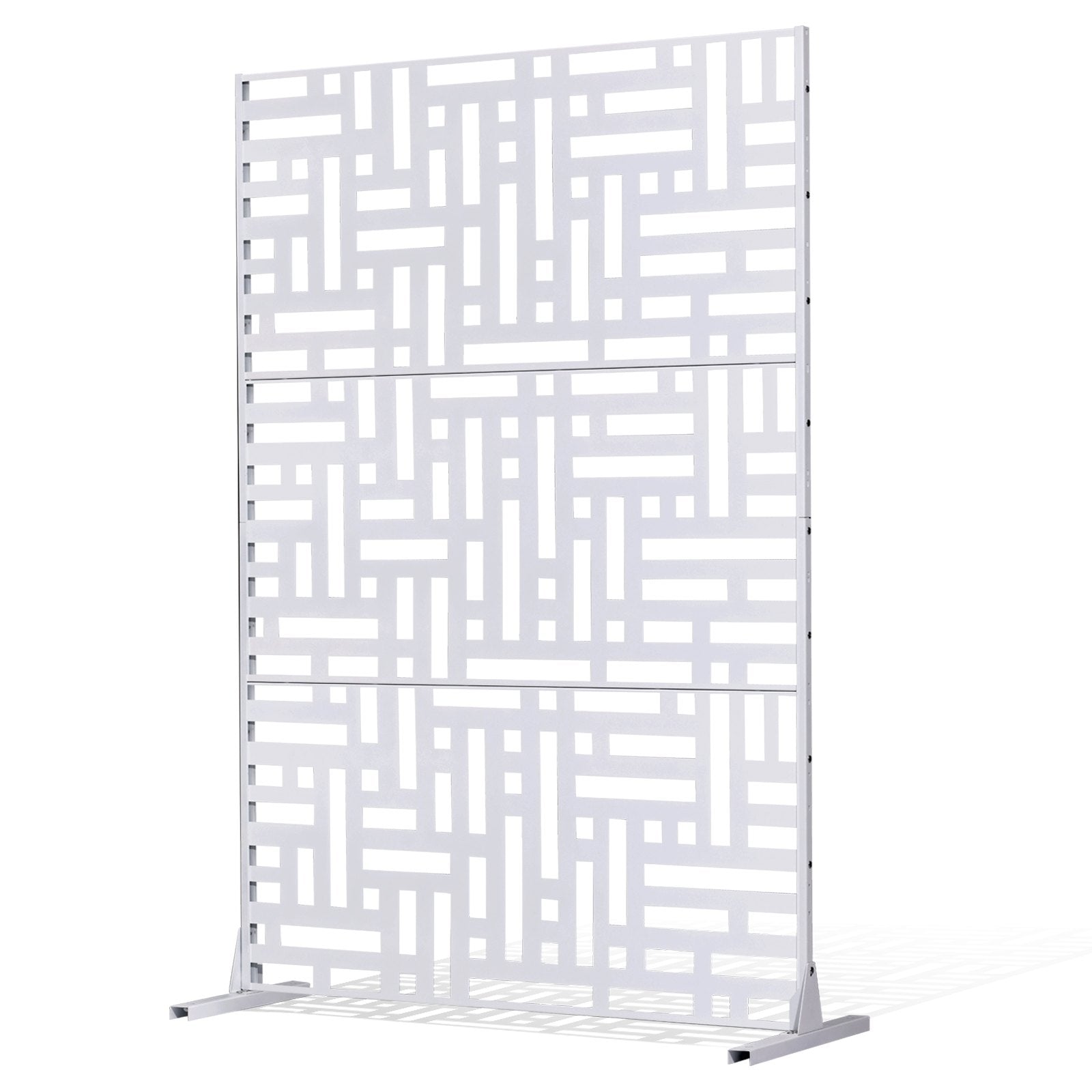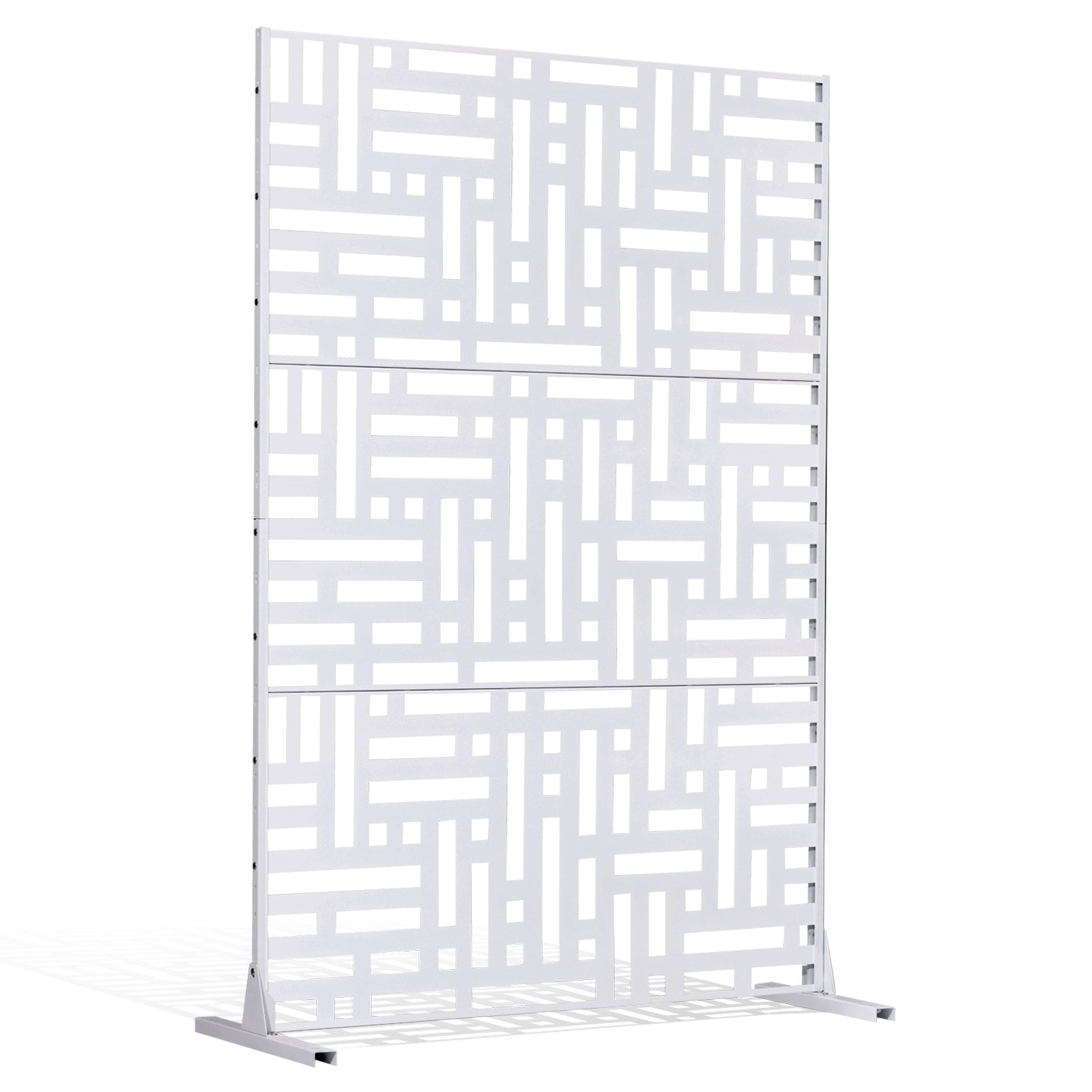 Metal Privacy Screen, 47" W x 76" H Outdoor Privacy Screens 3-Panel, Freestanding Outdoor Divider with Stand, Decorative Garden Steel Privacy Fence for Balcony Patio Indoor Room Hot Tub White