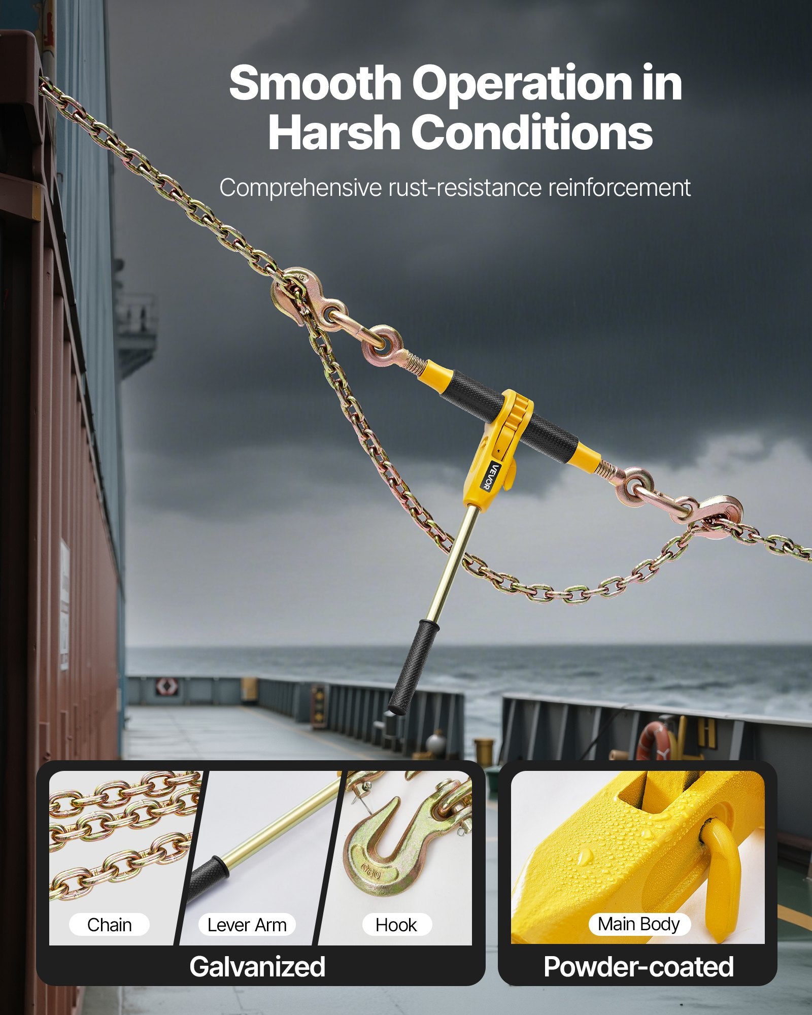 - Comprehensive Rust Protection: With a galvanized or heavy-duty spray coating, this ratchet load binder resists corrosion, ensuring lasting performance even in tough environments like coastal areas and dangerous sites, keeping your investment secure
