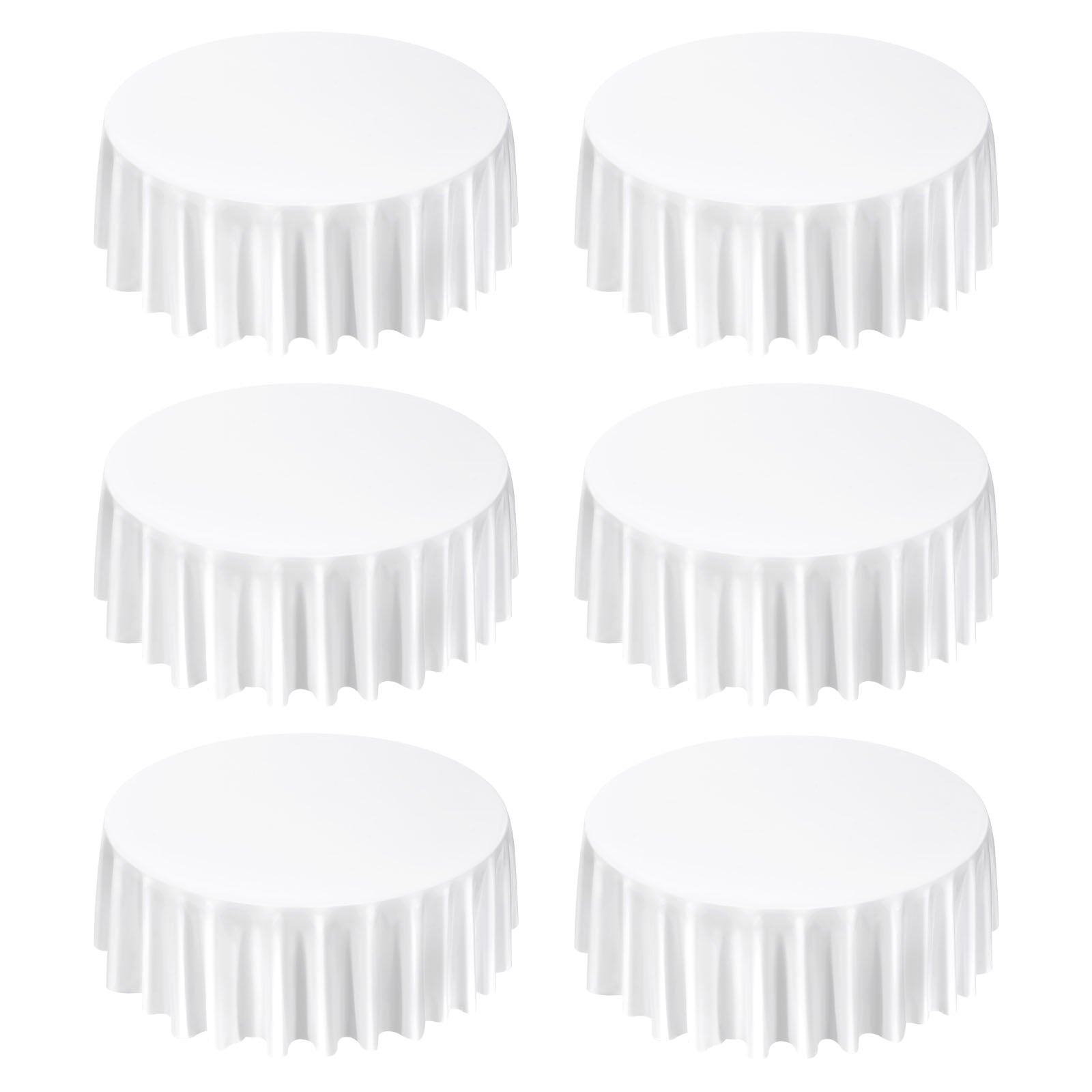 - Round Tablecloth Set: This round tablecloth helps protect against spills, stains, and scratches. The package includes 6 packs of white polyester round tablecloths, each 120 inches in diameter. Stylish and versatile. Please measure your table size before purchase and refer to our size chart for the best fit