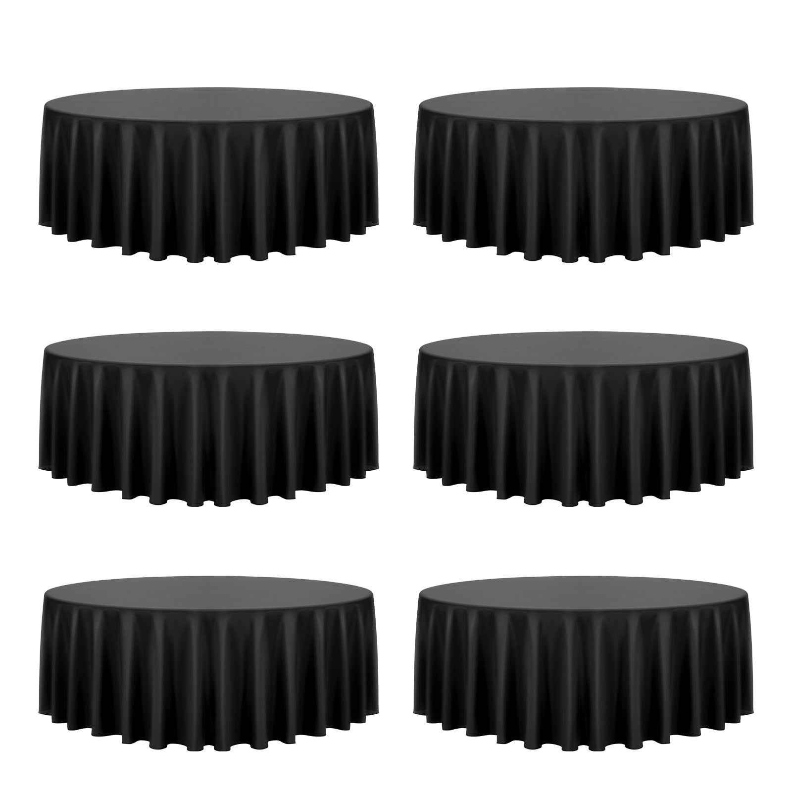 - Round Tablecloth Set: This round tablecloth helps protect against spills, stains, and scratches. The package includes 6 packs of black polyester round tablecloths, each 120 inches in diameter. Stylish and versatile. Please measure your table size before purchase and refer to our size chart for the best fit