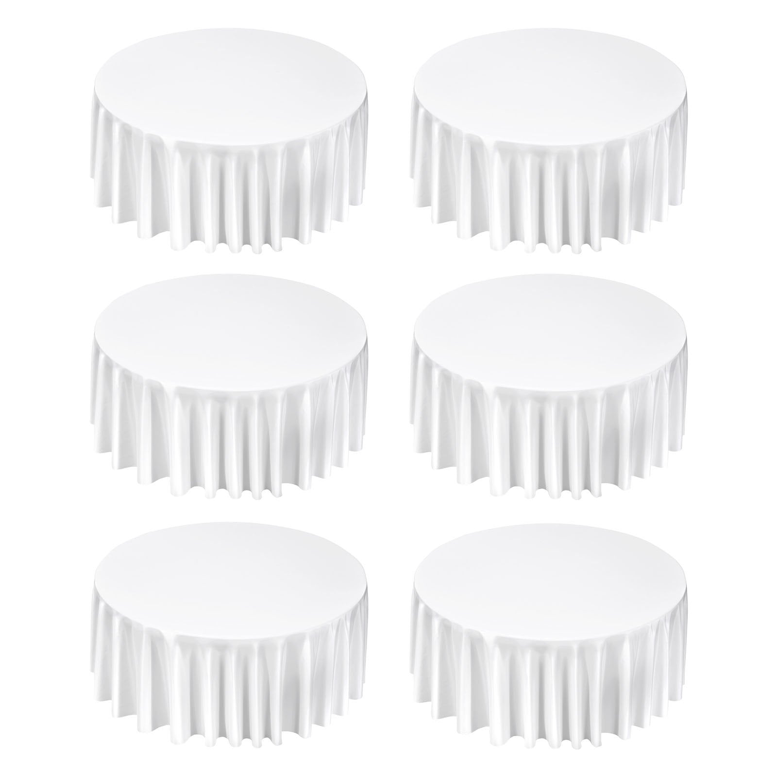 - Round Tablecloth Set: This round tablecloth helps protect against spills, stains, and scratches. The package includes 6 packs of white polyester round tablecloths, each 132 inches in diameter. Stylish and versatile. Please measure your table size before purchase and refer to our size chart for the best fit