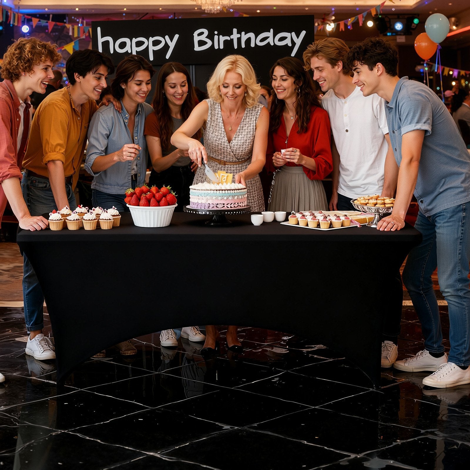 - Spandex Tablecloth Set: Our High-quality spandex tablecloth set effectively protects against spills, stains, and scratches. The package includes 10 black polyester rectangular tablecloths (6 ft / 1829 mm), suitable for 6 ft long rectangular tables. Please measure your table size before purchase