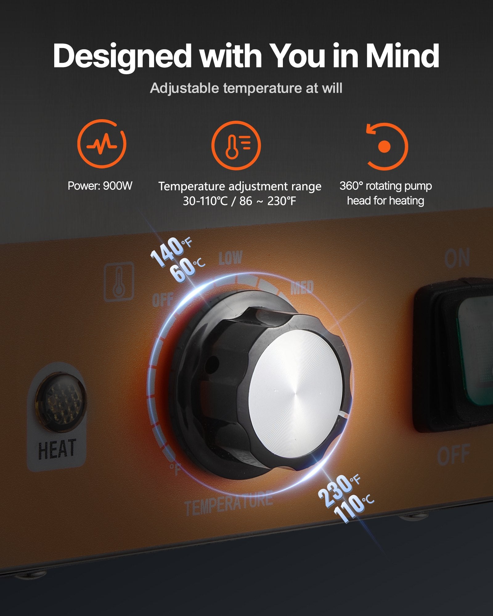 - Precision Temperature Control: The hot fudge warmer offers a wide range of temperature settings from 86℉-230℉ (30℃-110℃). Its powerful 900W ensures the water in the tank heats up swiftly to your chosen temperature