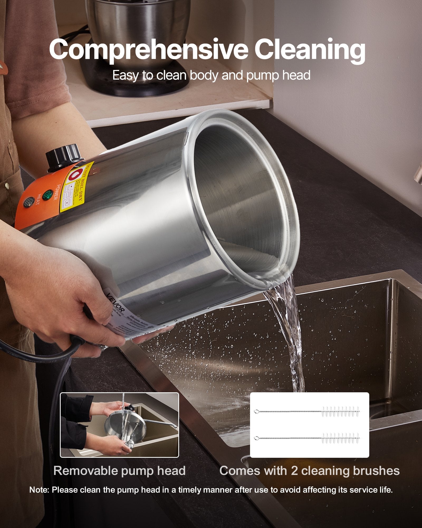 - Effortless Cleaning: The cheese sauce dispenser is designed with separate food and water basins, and a detachable pump head for cleaning ease. This design facilitates simple water refilling and draining, and ensures comprehensive cleaning