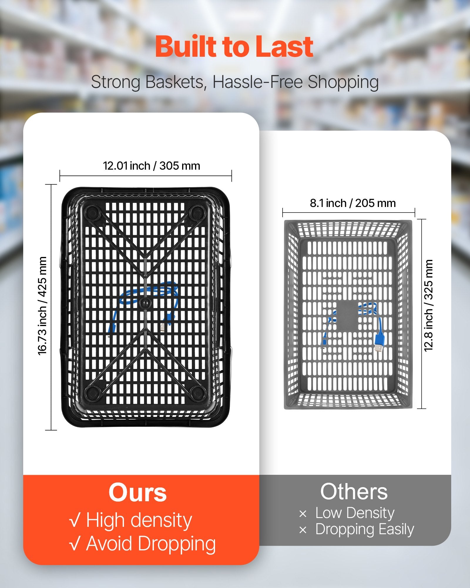 - Multi-Purpose Use: Our hand shopping baskets are ideal for supermarkets, malls, bookstores, and convenience stores. Their stable design and high load capacity keep goods secure, whether shopping or storing items