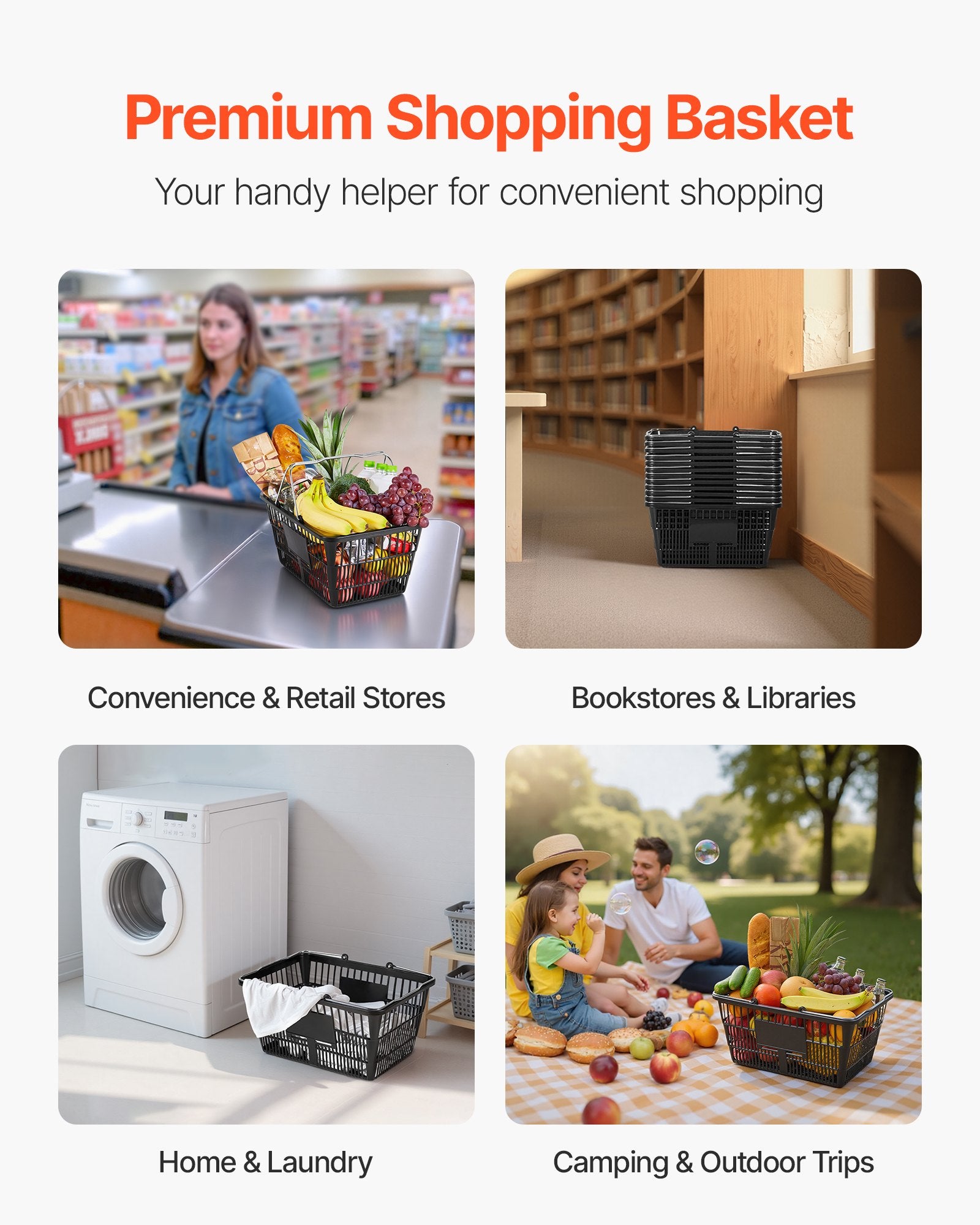 - Large Capacity: Measuring 16.73 x 12.01 x 8.46 in, each basket holds 21L, ideal for weekly groceries. Coming in a 12-pack for family sharing, our shopping baskets easily store fruits, vegetables, shampoo, and daily essentials