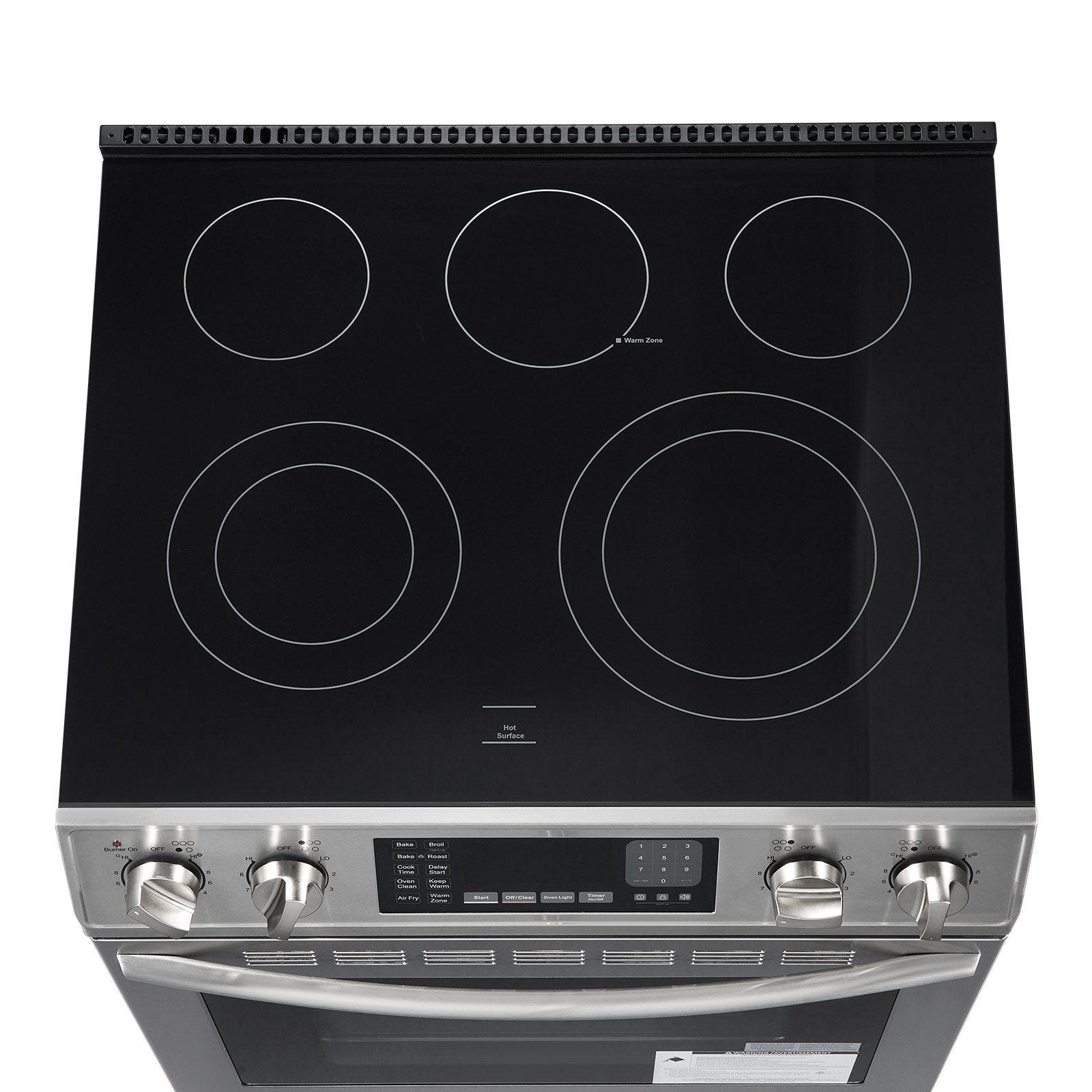 - Spacious & Versatile Design: This electric oven, with a standard size of 30 in and 5 burners, lets you sauté, simmer, and boil at one time. A 4.8 cu. ft. oven fits a whole turkey and features 6 adjustable racks, great for efficient family cooking