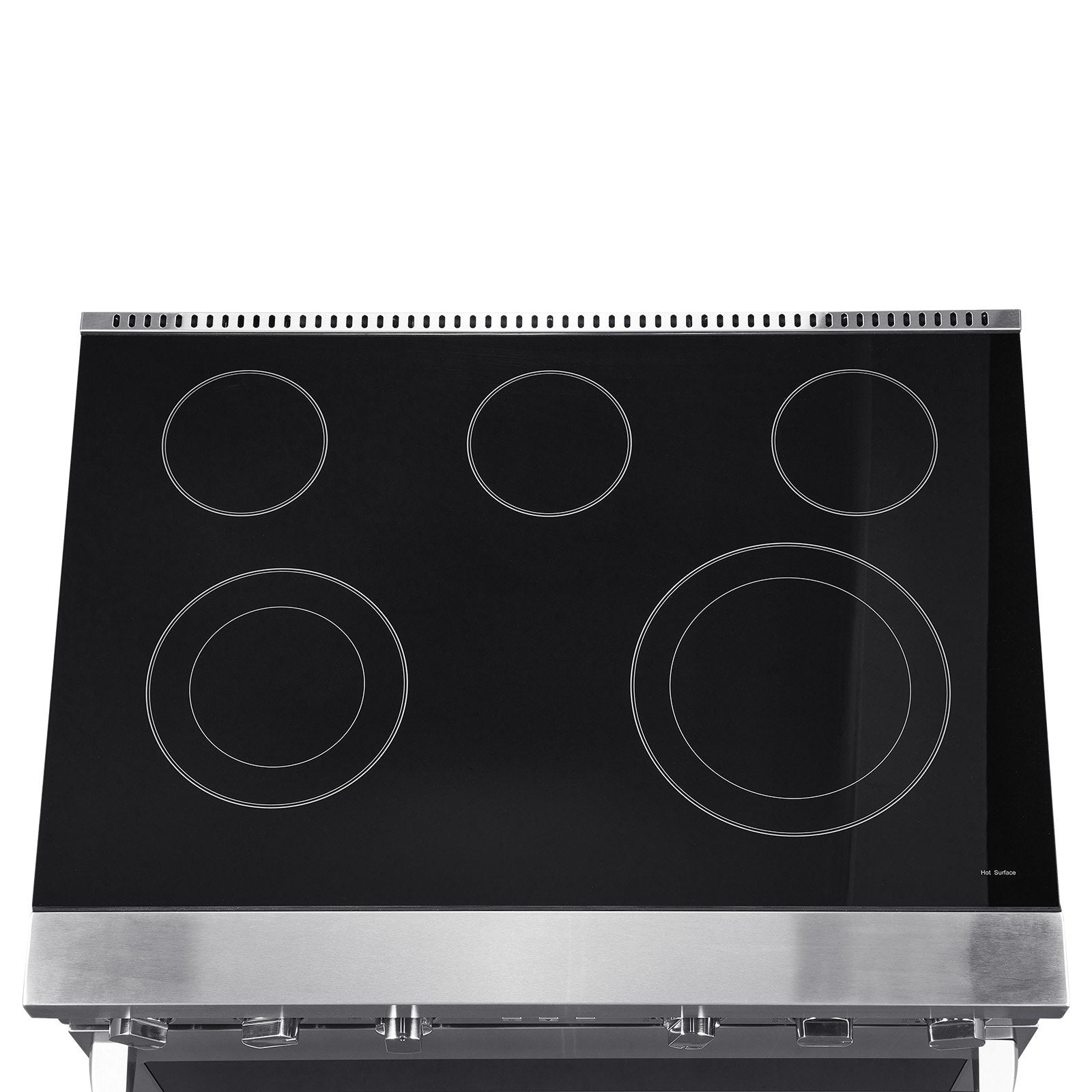- Spacious & Versatile Design: This electric oven, with a standard size of 36 in and 5 burners, lets you sauté, simmer, and boil at one time. A 6.0 cu. ft. oven fits a whole turkey and features 6 adjustable racks, great for efficient family cooking