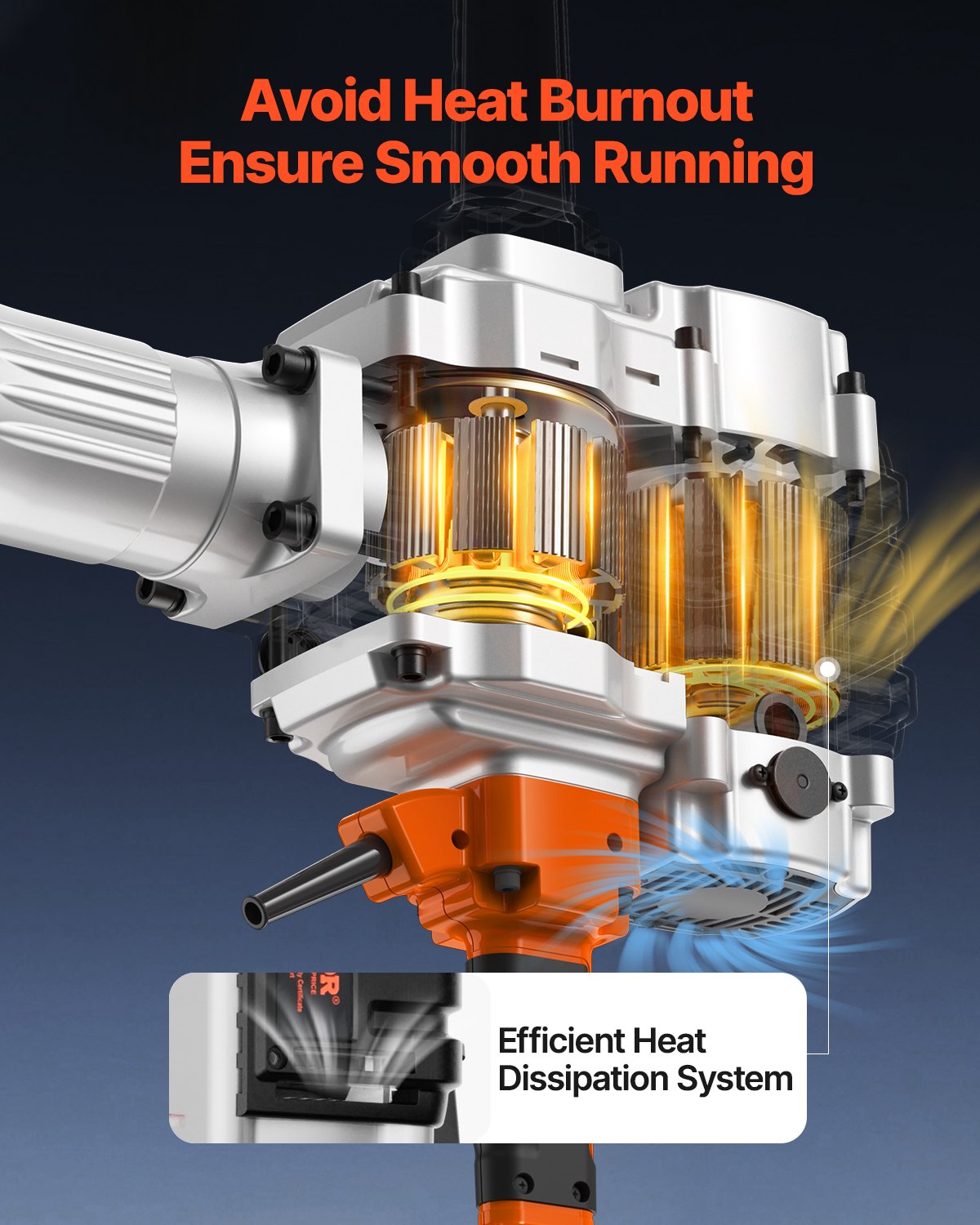 - Built to Last: The integrated aluminum body is sturdy and wear-resistant, capable of withstanding accidental drops in harsh working conditions. The quick heat dissipation design ensures the jack hammer concrete breaker doesn't overheat during extended use, prolonging its lifespan and preventing burnout.