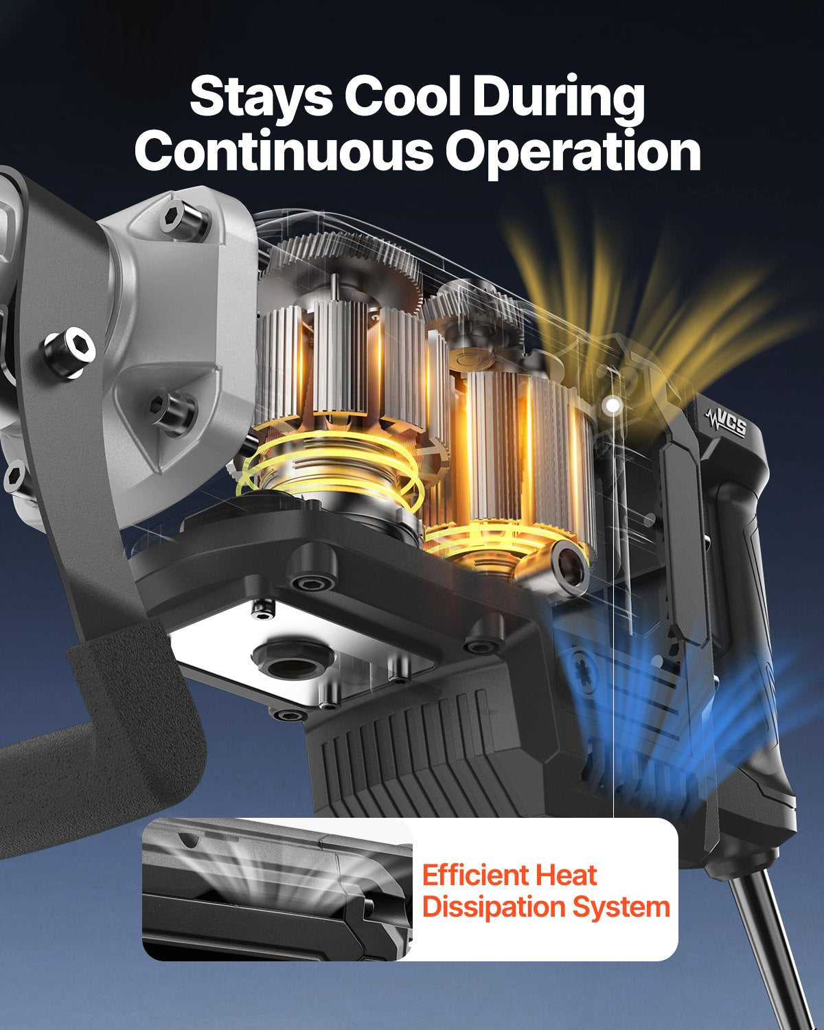 - High-Performance Motor: Powered by a 3000W motor delivering up to 1700 BPM, this demolition jack hammer tackles heavy-duty tasks with speed and efficiency—ideal for both home use and commercial projects