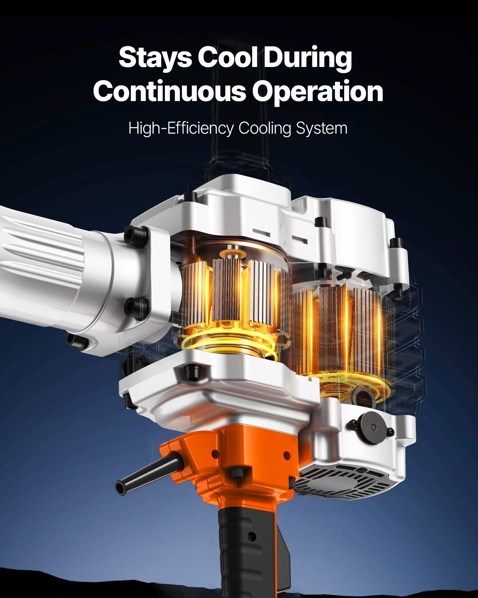 - Easy to Control: The T-shaped handle design provides a stable grip, ensuring better control during operation. Coupled with triple shock-absorption technology, the jack hammer reduces vibration transfer, significantly minimizing hand fatigue