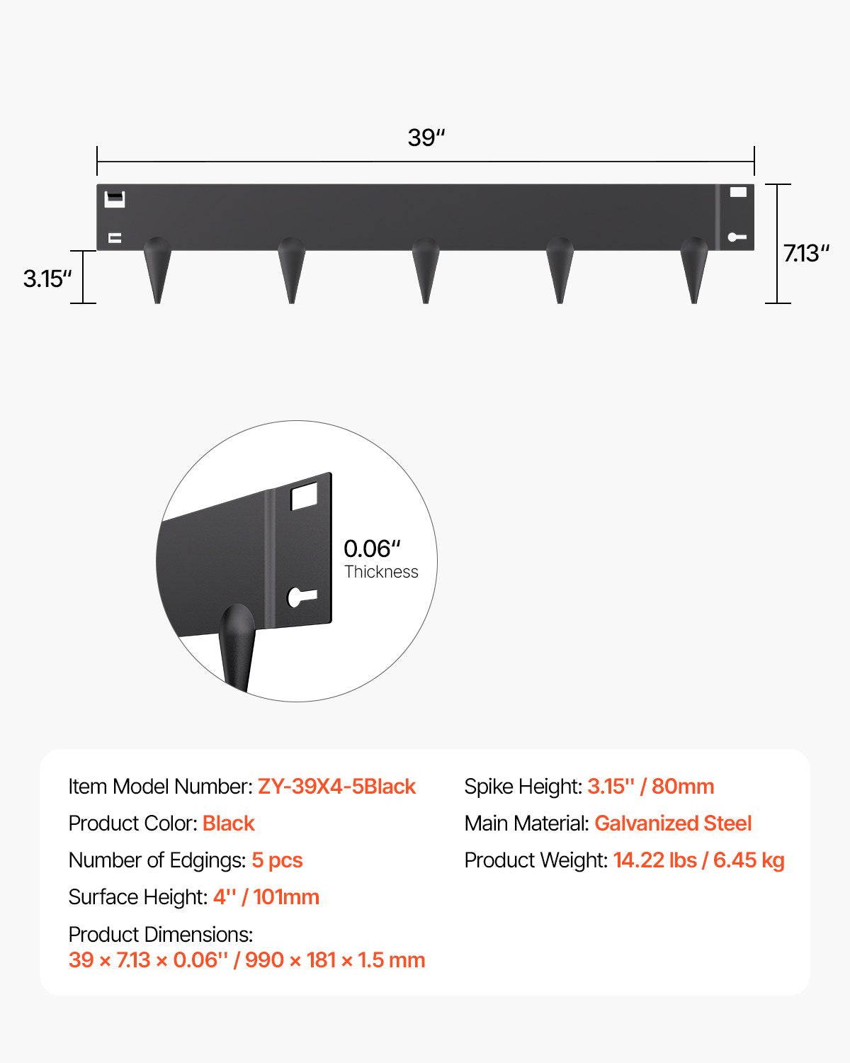 Steel Landscape Edging, 5 Packs 39 x 4 in Rust-Resistant Metal Landscape Edging, Bendable Garden Edging Border, Heavy Duty Lawn Edging, Easy-to-Install, Flower Bed Yard Pathway Divider Black
