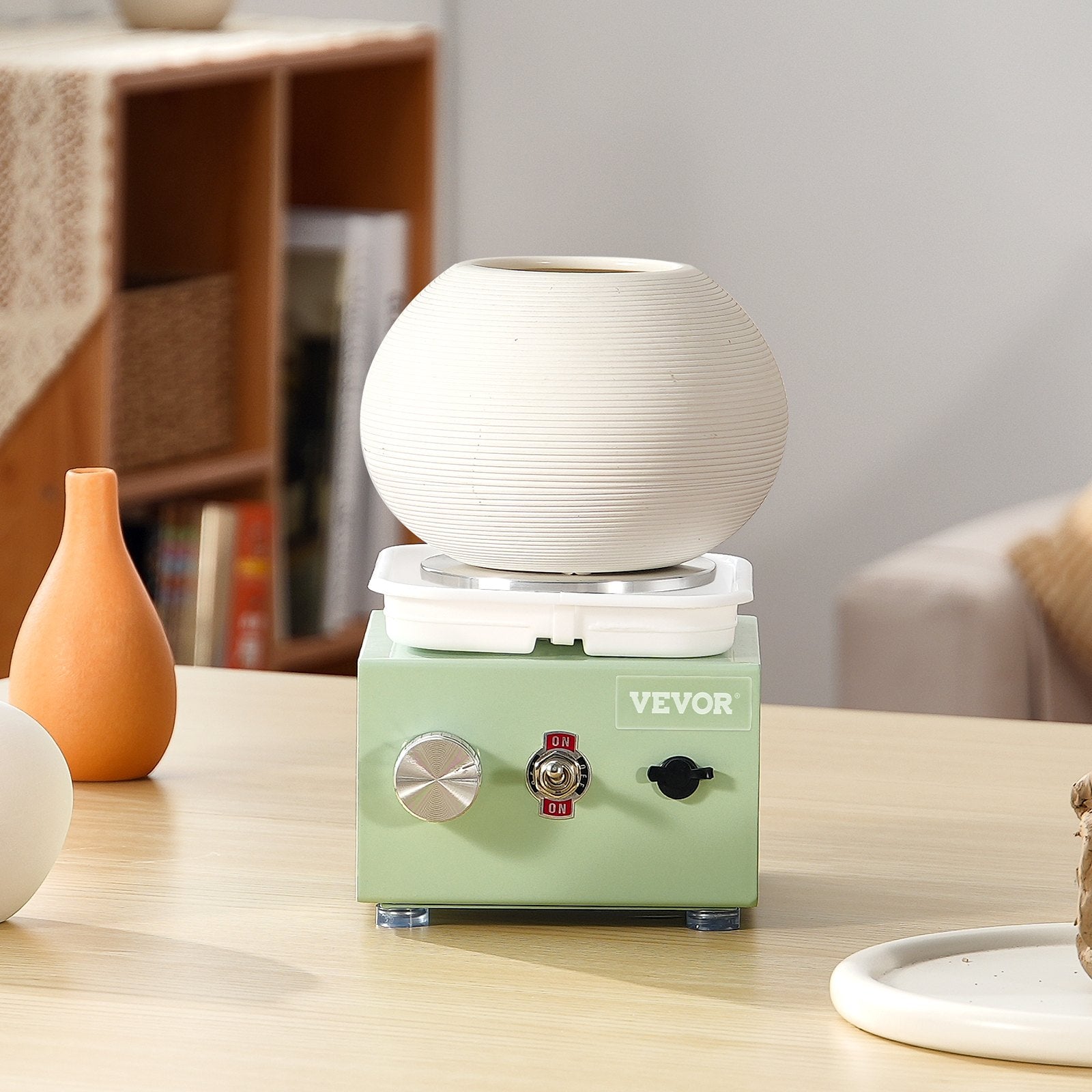 Mini Pottery Wheel, 0-320RPM Adjustable Speed Detachable Basin Forming Machine, 2.56in/3.94in 2 Turntables Electric Ceramic Wheel Machine, 18pcs Accessories, for Art Craft Work Home DIY, Green