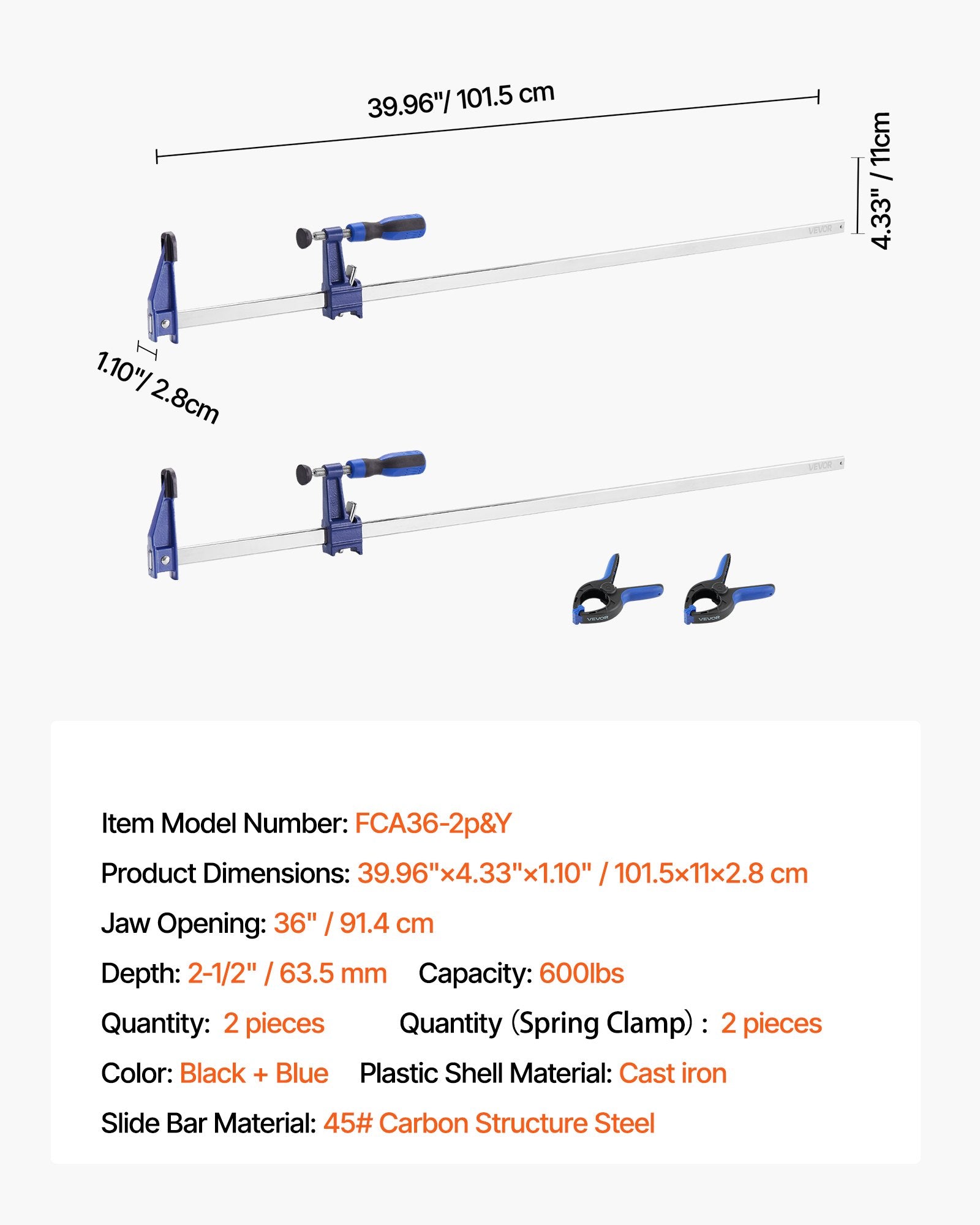 Bar Clamps for Woodworking, 2-Pack 36 inch Opening, Lockable F-Clamp with 600 lbs Load Limit, 2-1/2 inch Depth, Cast Iron and Carbon Steel, Easy to Use, Wood Clamps for Woodworking Metal Working