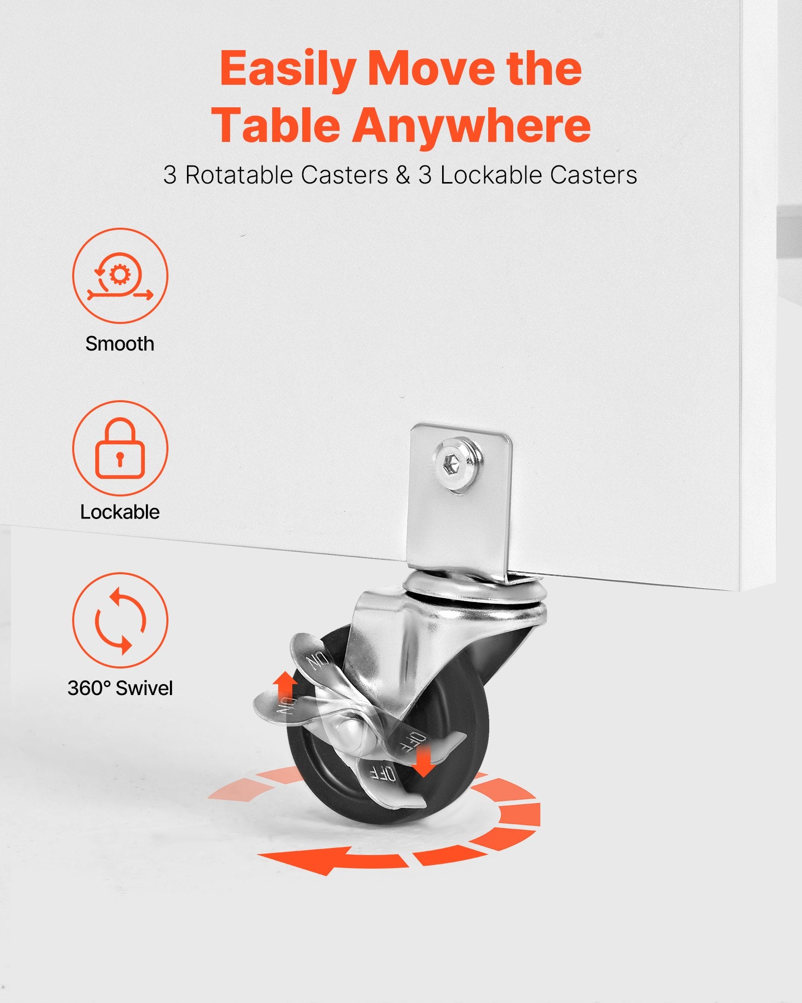 - Easy to Move: Equipped with 3 360° rotating casters and 3 locking casters, the sewing desk allows you to easily move the table anywhere. Its lockable casters keep it stable during use, while the 360° rotation enables flexible movement
