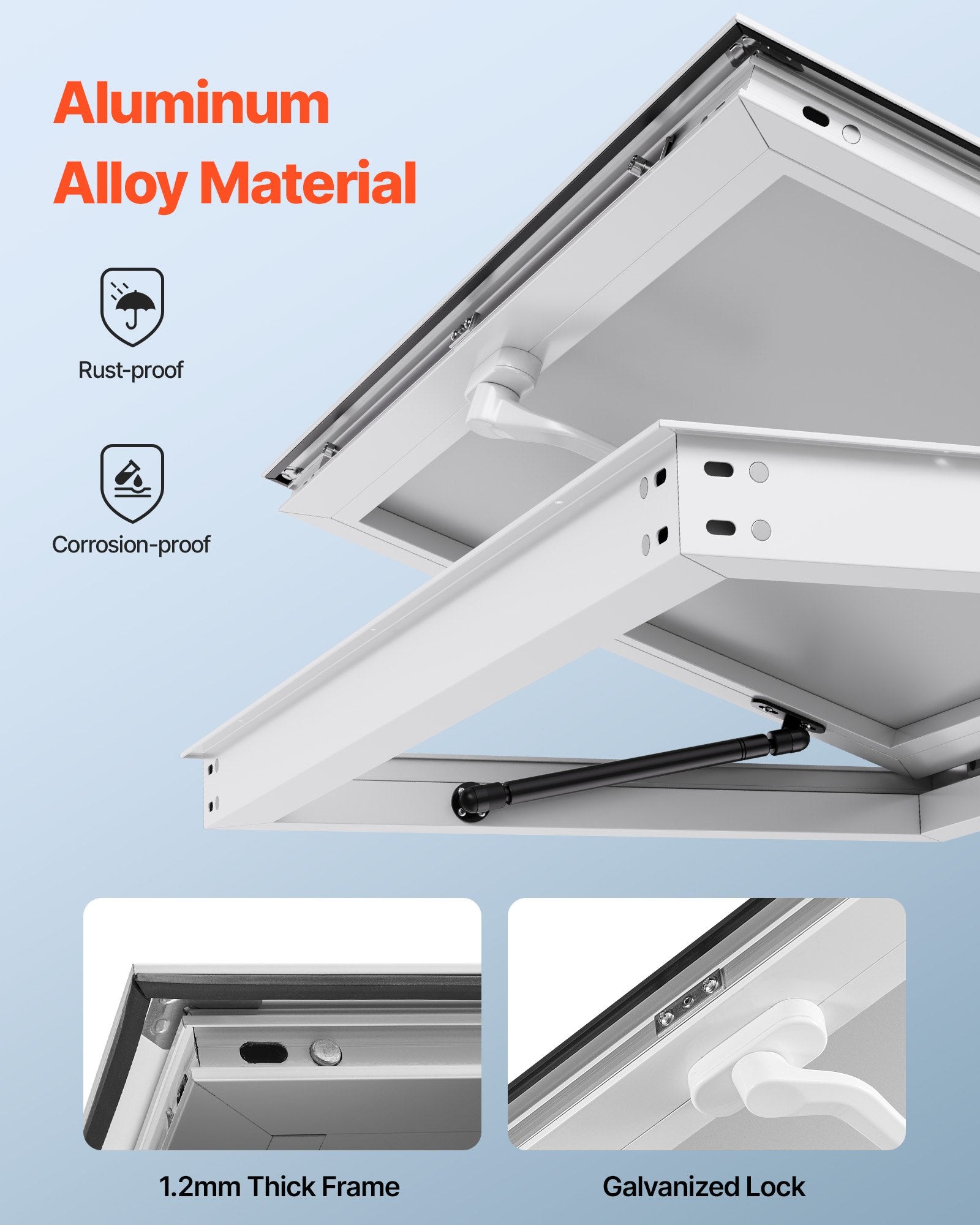 - Premium Materials: Our food truck serving windows are built with a thick aluminum alloy frame and galvanized components, ensuring sturdiness and longer lifespan. Finished with a baked-on paint process, the food truck windows look elegant and stylish