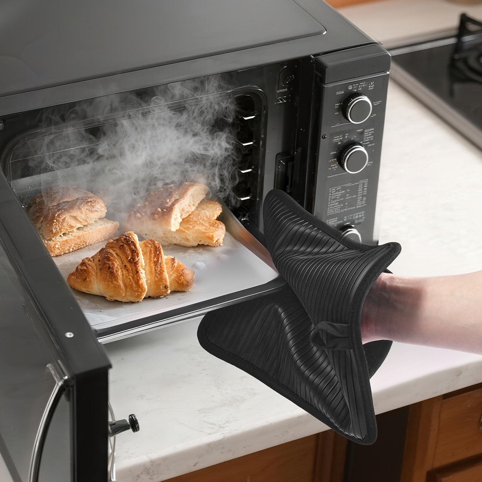 - High-Temperature Protection: These hot pads feature a surface made of heat-resistant silicone strips and cotton fabric, with insulated cotton padding inside. They provide protection up to 500°F / 260℃, keeping your hands from burns
