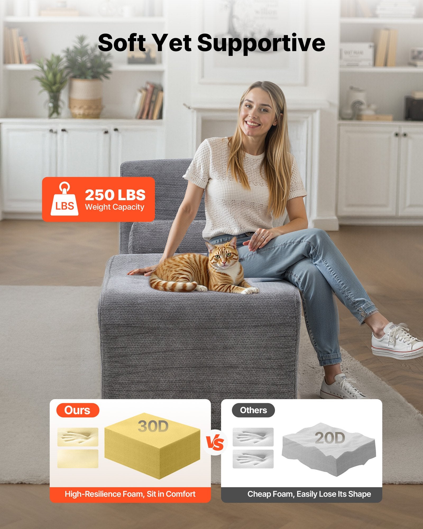 - Ergonomic Comfort: This yoga chaise features an ergonomic design with high-density sponge. Soft yet supportive, it contours to your body for lasting comfort without sagging. A sturdy lounge chair built for everyday relaxation