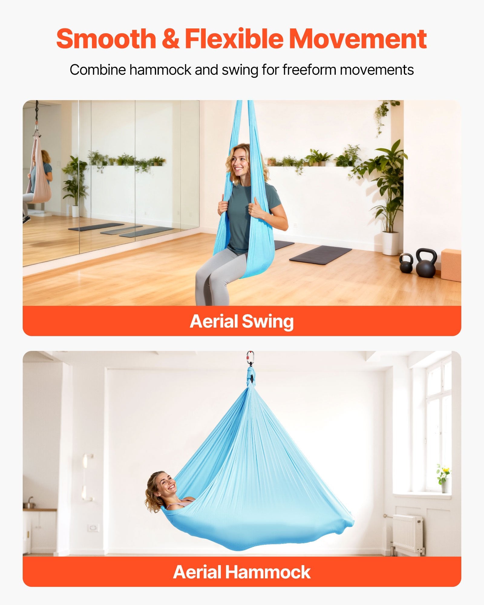 - 360° Swing Design: Featuring a cocoon structure with a swivel hook, this aerial silk hammock enables 360° swinging to stimulate sensory awareness. Suitable for various ceiling heights, it allows quick changes between hammock and swing modes, giving yogis a highly adaptable and enjoyable aerial experience