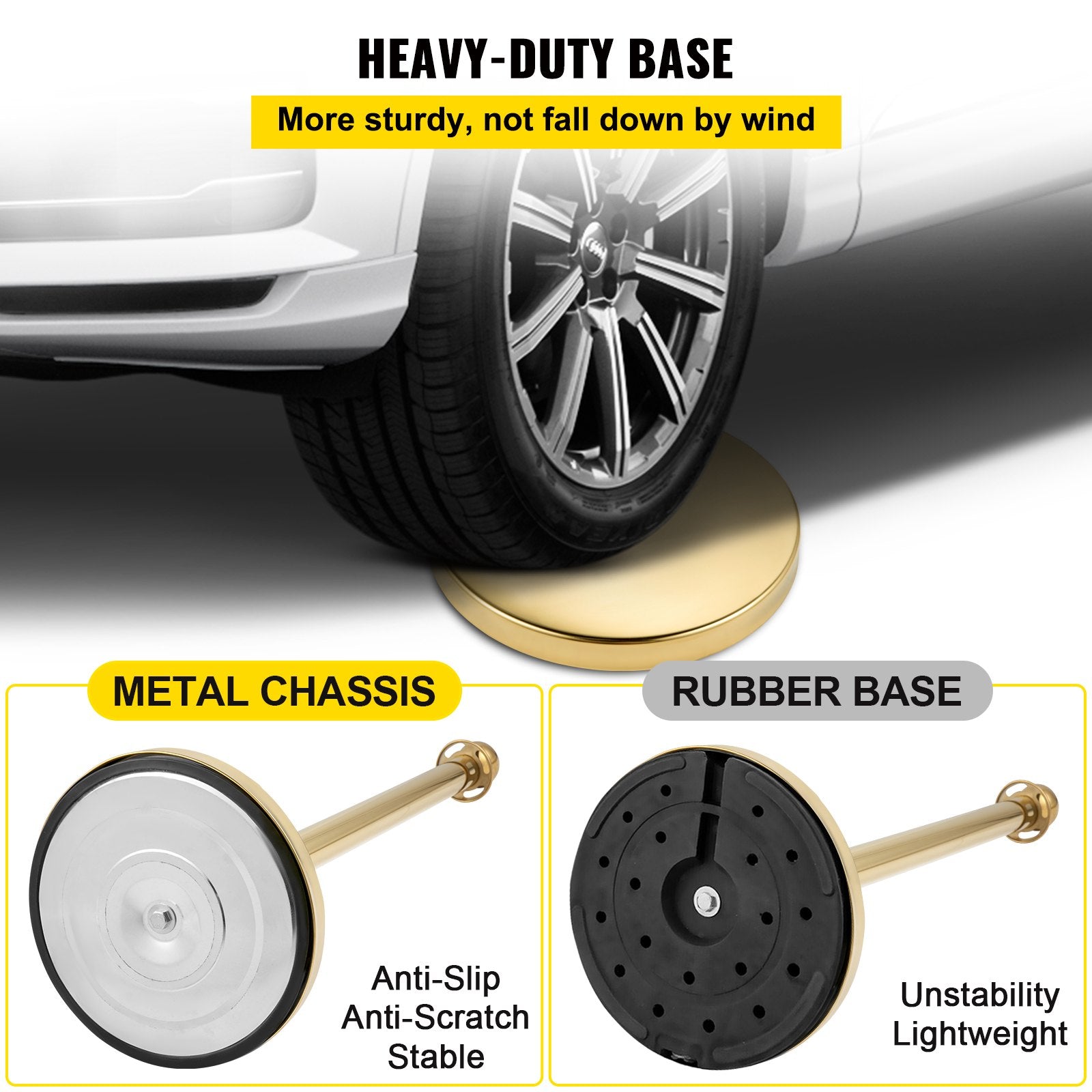 - Heavy-Duty Base: These 12.6in the stable base are filled with heavy-duty concrete, which is strong enough to against the strong wind and not easy to be pushed down by the crowd. In addition, This metal chassis is designed for maximum protection against floor scuffing and stanchion itself.