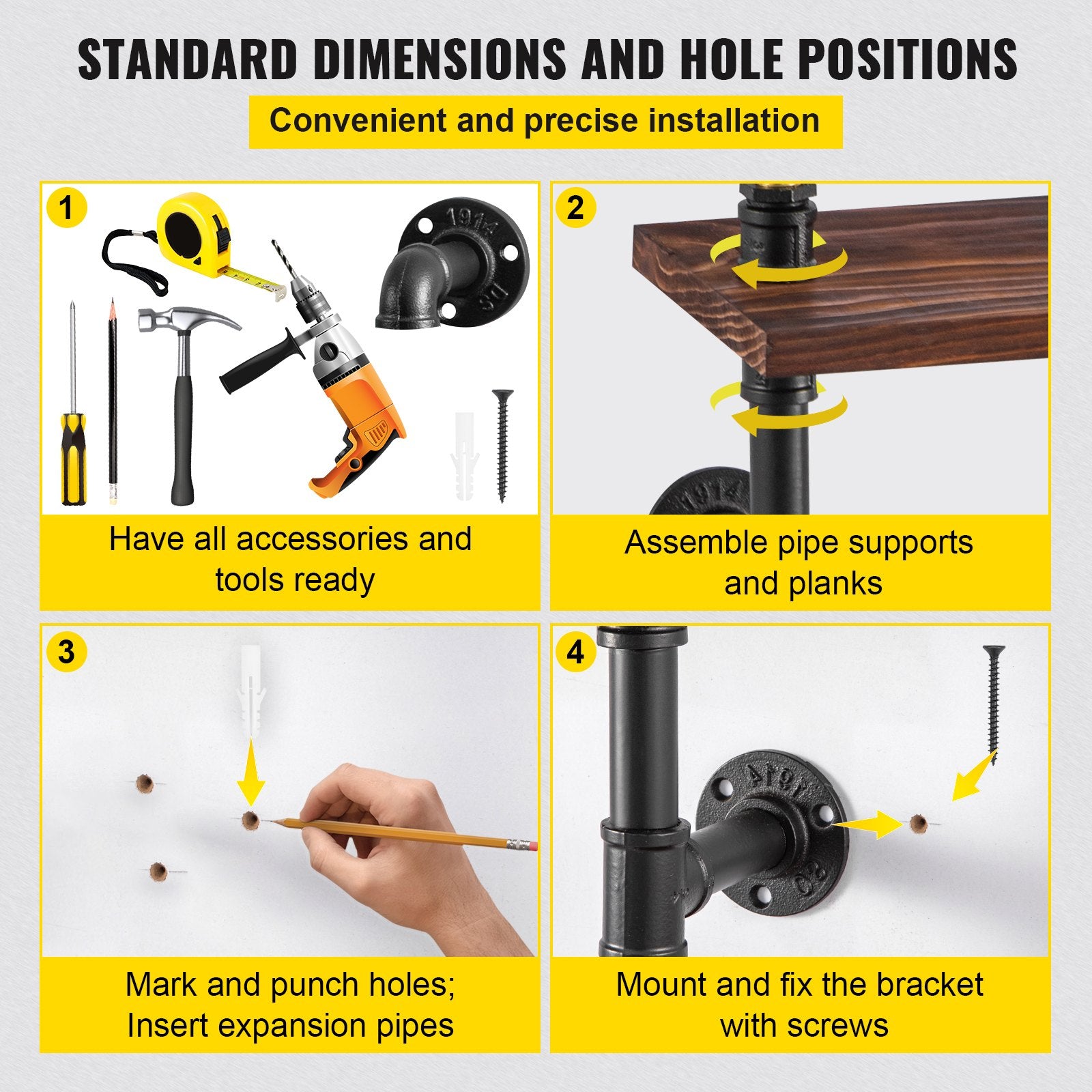 - Simple & Fast Assembly: All hardware is included in the package. Strict quality control standards and precise measurements ensure that all screws are aligned with studs and flush to all pipes. It is easy for you to install our pipe shelving according to the instruction manual.