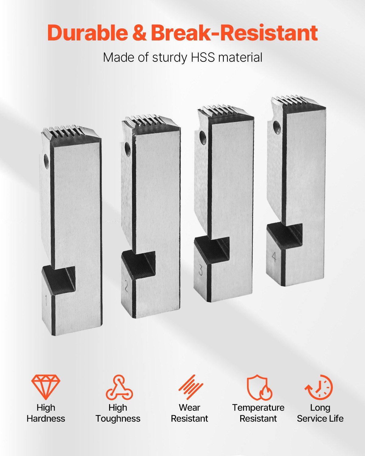 - Wide Compatibility: These NPT pipe dies are designed for VEVOR integrated pipe threading machines, ensuring an ideal fit and reducing replacement costs.