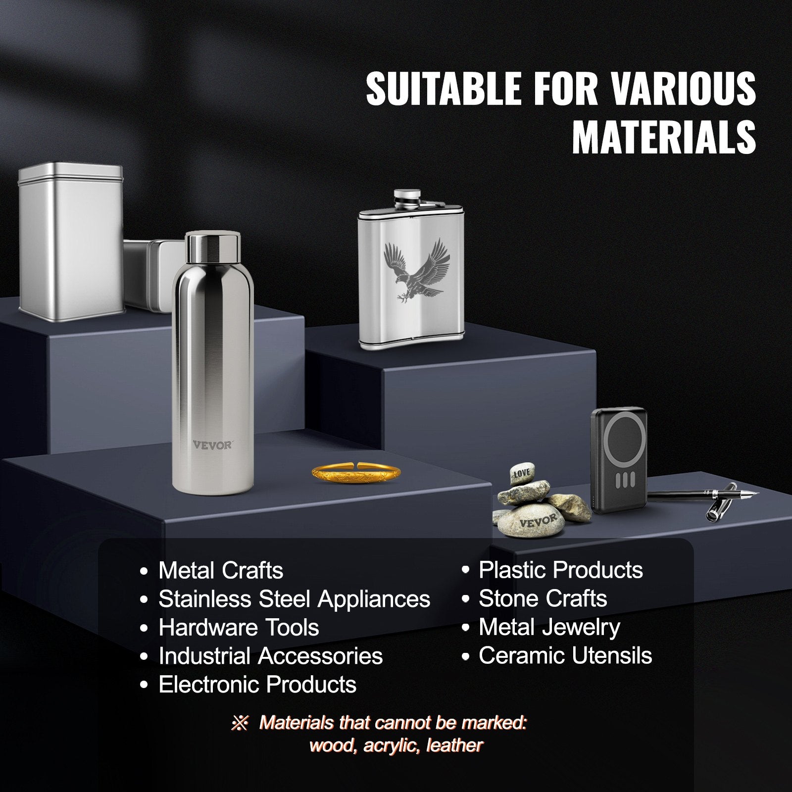 - Widely Compatible: Our fiber marking machine supports macOS and Windows (7/8/10/11) systems and various file formats, including BMP, JPG, JPEG, and GIF. It can mark your desired patterns on most metals, plastics, and ceramics.