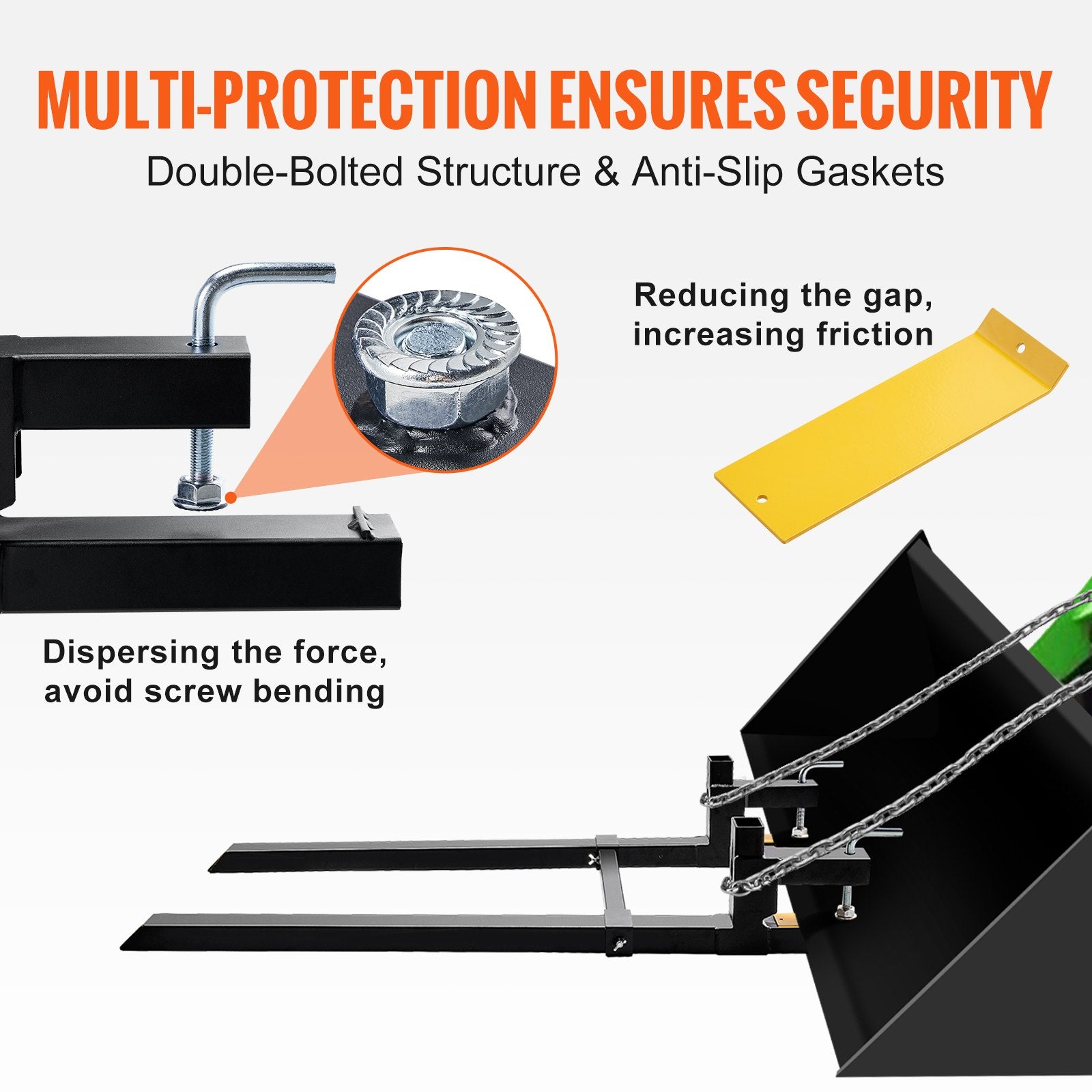 - Reinforced Bolts & Screws: With reinforced bolts and grooved screw heads, our clamp on pallet fork is built to last.