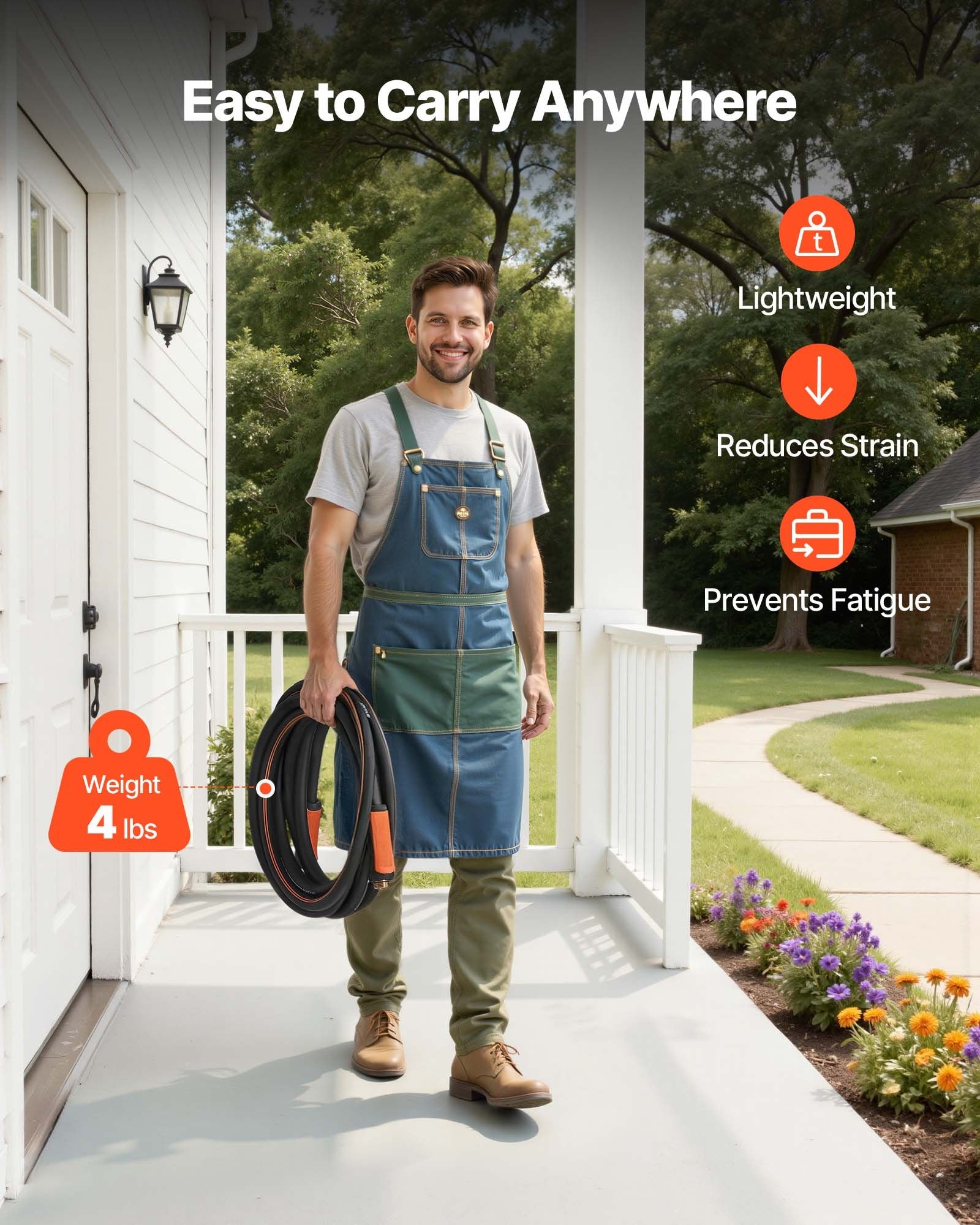 - Lightweight & Easy to Handle: Weighing just 4 lbs / 1.8 kg, this heavy-duty rubber hose is easy to maneuver around your yard. Even seniors or users with less strength can handle it comfortably. Drain the water after use and coil it in a figure-8 shape for quick, tangle-free storage