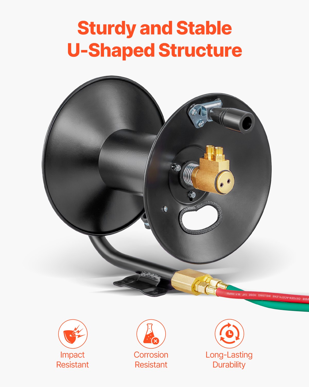 - No More Tangled Hoses: This heavy duty welding hose reel keeps your hoses neatly organized, preventing tangles and reducing wear. It improves work efficiency while maintaining a clean and orderly workshop or workspace.