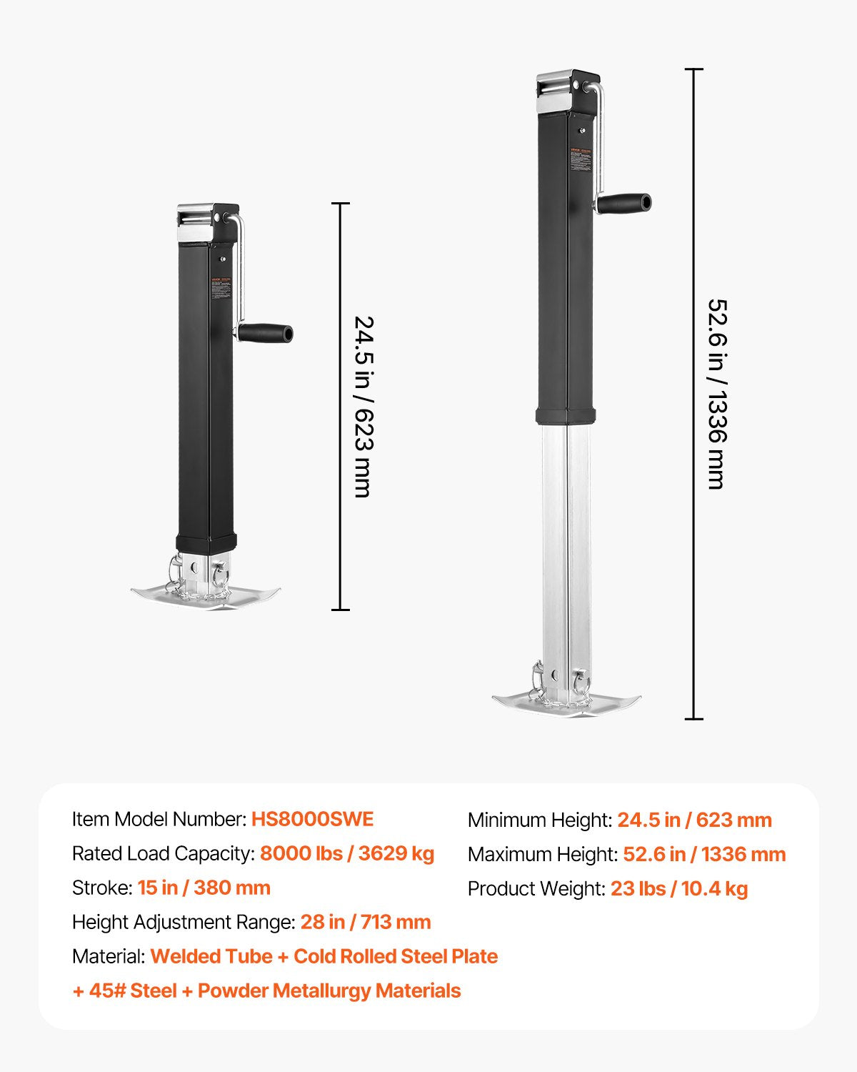 - Heavy-Duty Load Capacity: The trailer jack boasts an impressive lifting capacity of 8000 lbs, making it a powerful tool for lifting tasks. With a lifting height of 28 inches, it fits both high-profile and low-profile trailers.