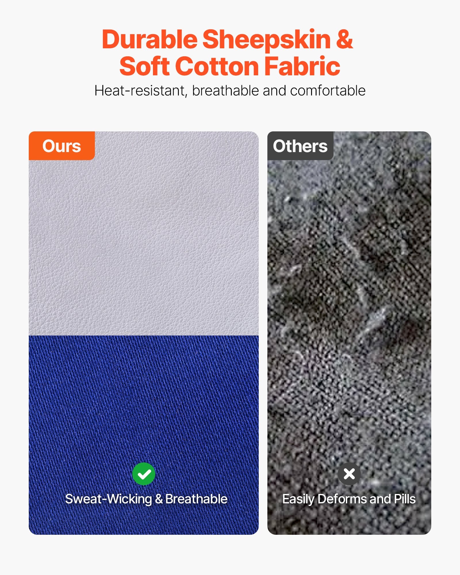 - Enhanced Durability: The sheepskin part is sewn with strong, flame-resistant Kevlar thread, making the VEVOR welding work sleeves exceptionally durable and reliable. They are resistant to wear and tear, effectively protecting your arm from sparks, flames, and heat
